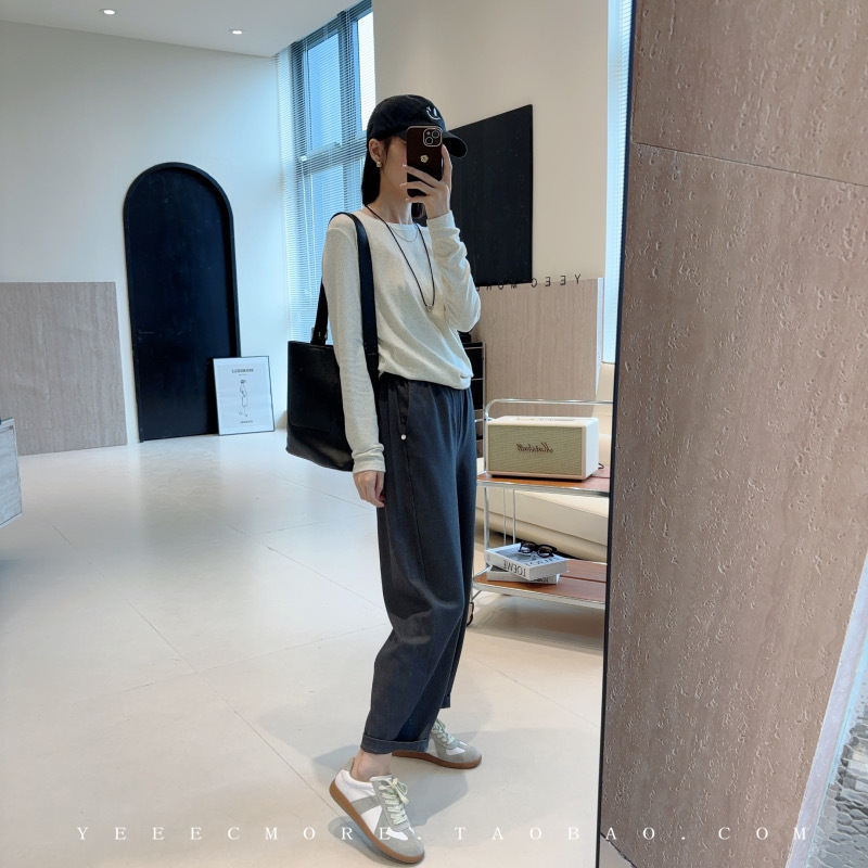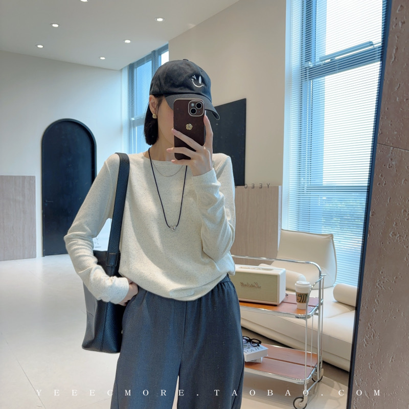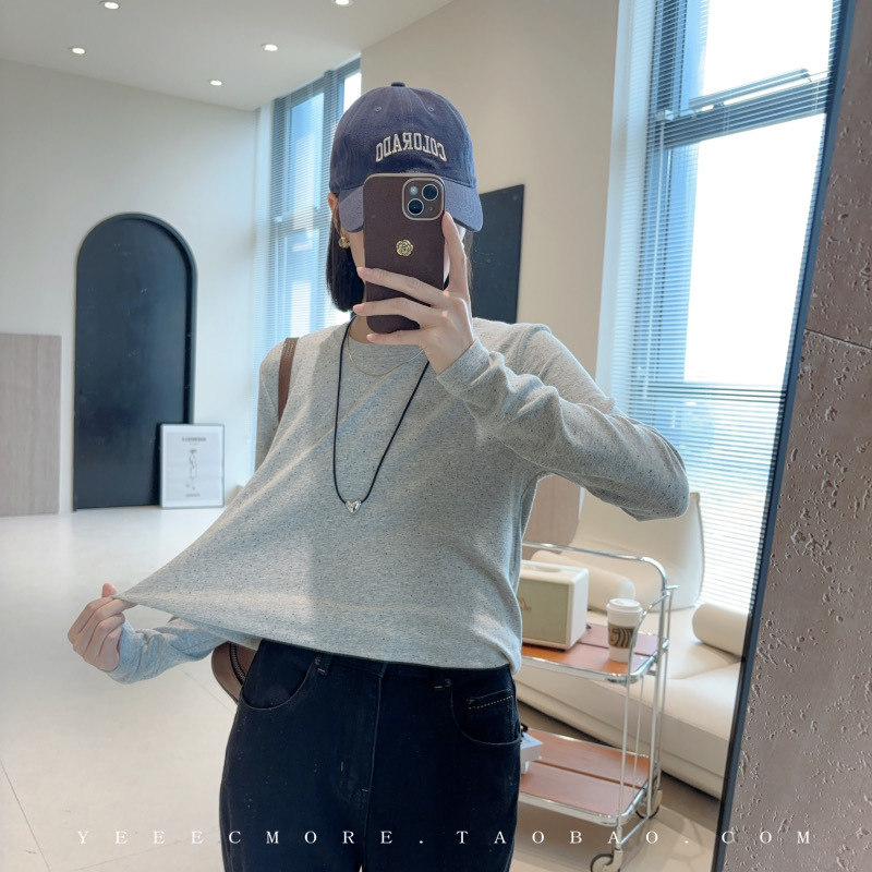 작은 Flora Mu Si Velvet 부드러운 부드러운 찹쌀 간단한 둥근 목 긴 소매 티셔츠 여성용 가을베이스 셔츠 T2618S스토어 가기