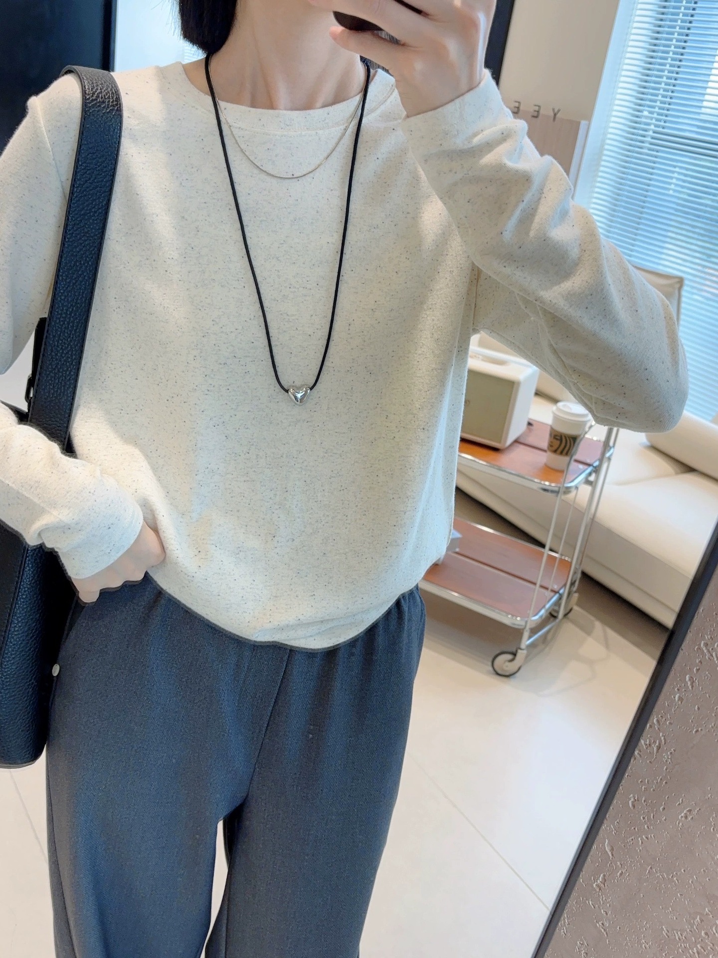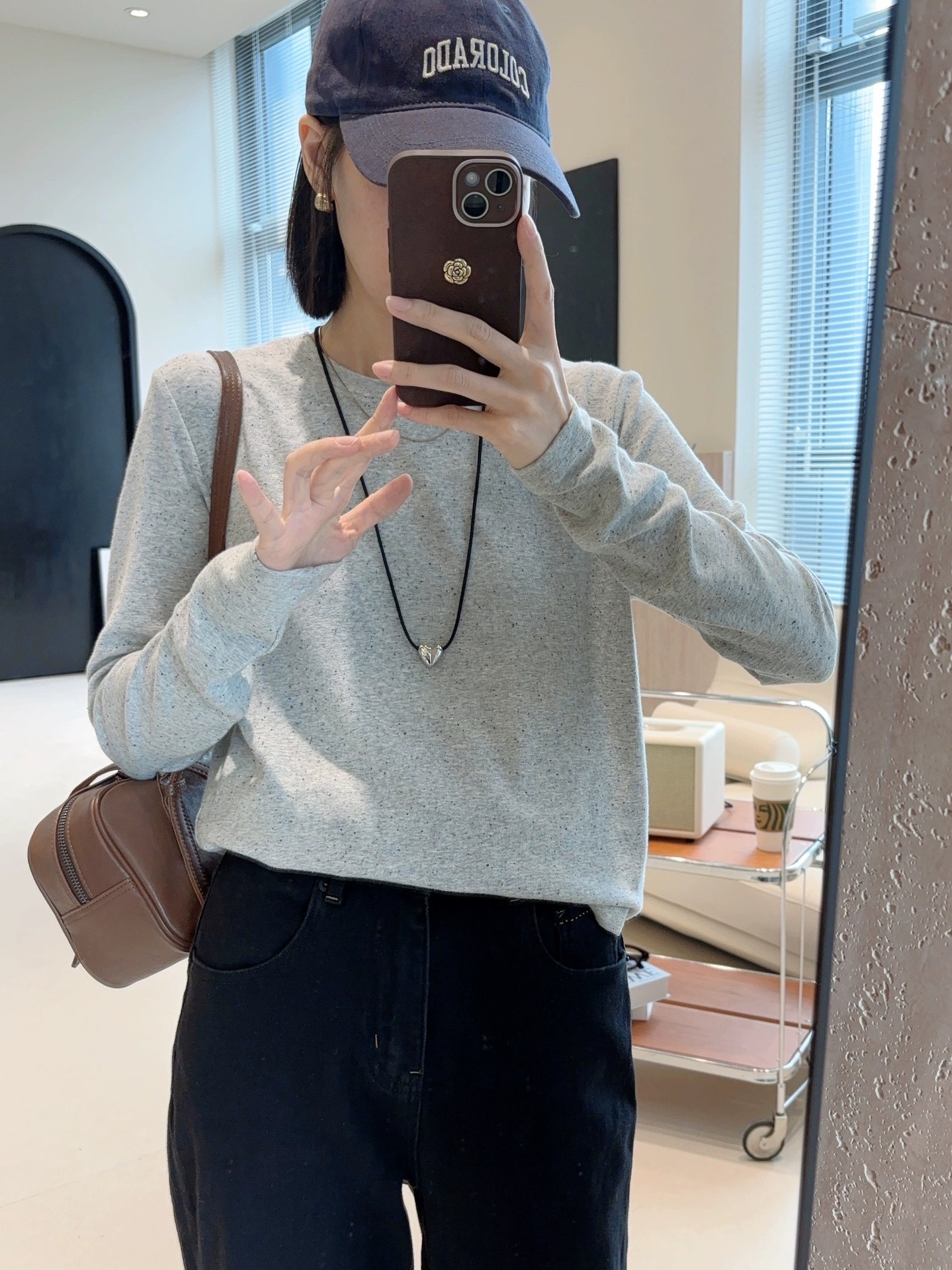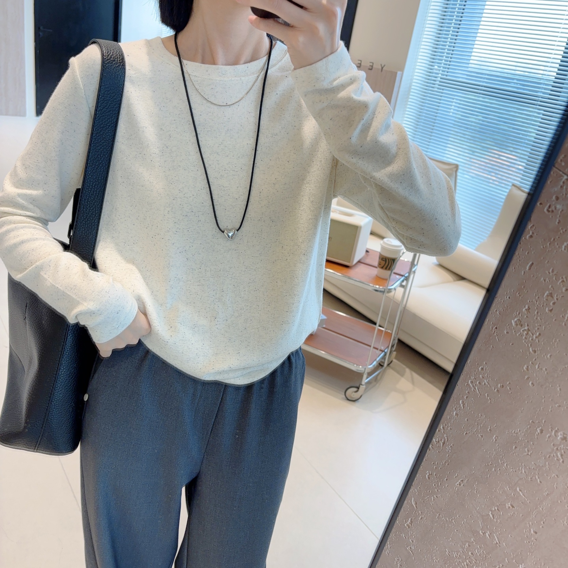 작은 Flora Mu Si Velvet 부드러운 부드러운 찹쌀 간단한 둥근 목 긴 소매 티셔츠 여성용 가을베이스 셔츠 T2618S