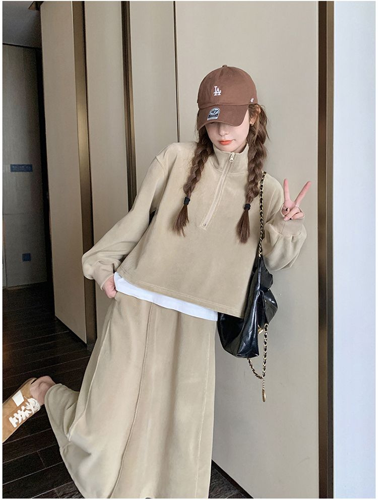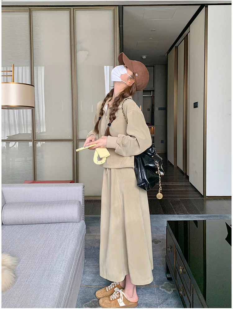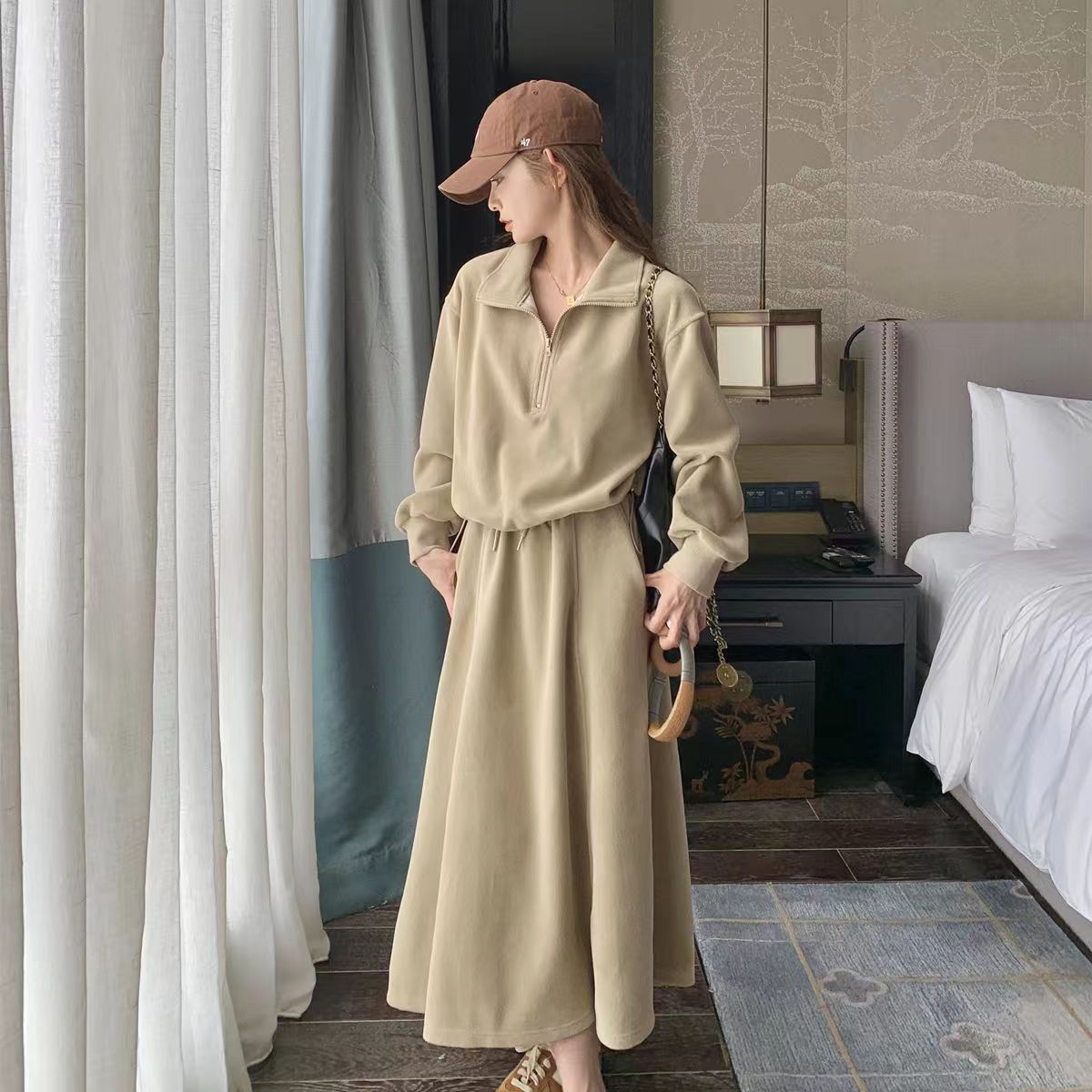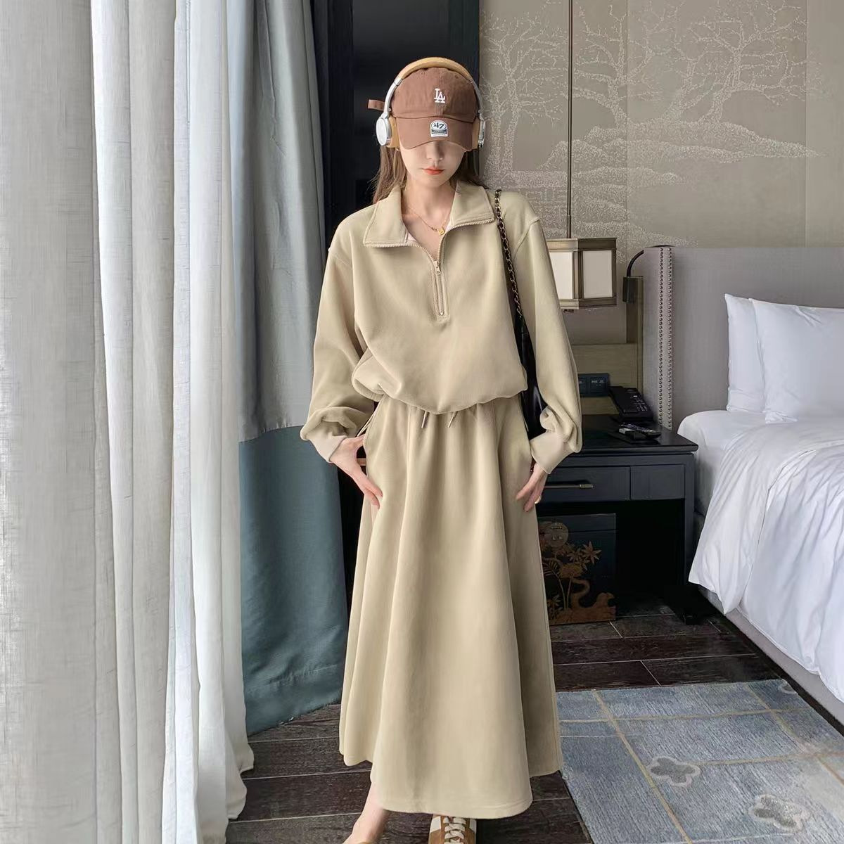 한국 스타일의 새로운 유행 서양식 인터넷-유명한 스커트 세트 여성 초가을 캐주얼 스포츠 스웨트 셔츠 투피스 세트