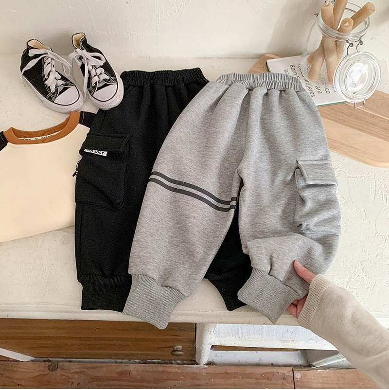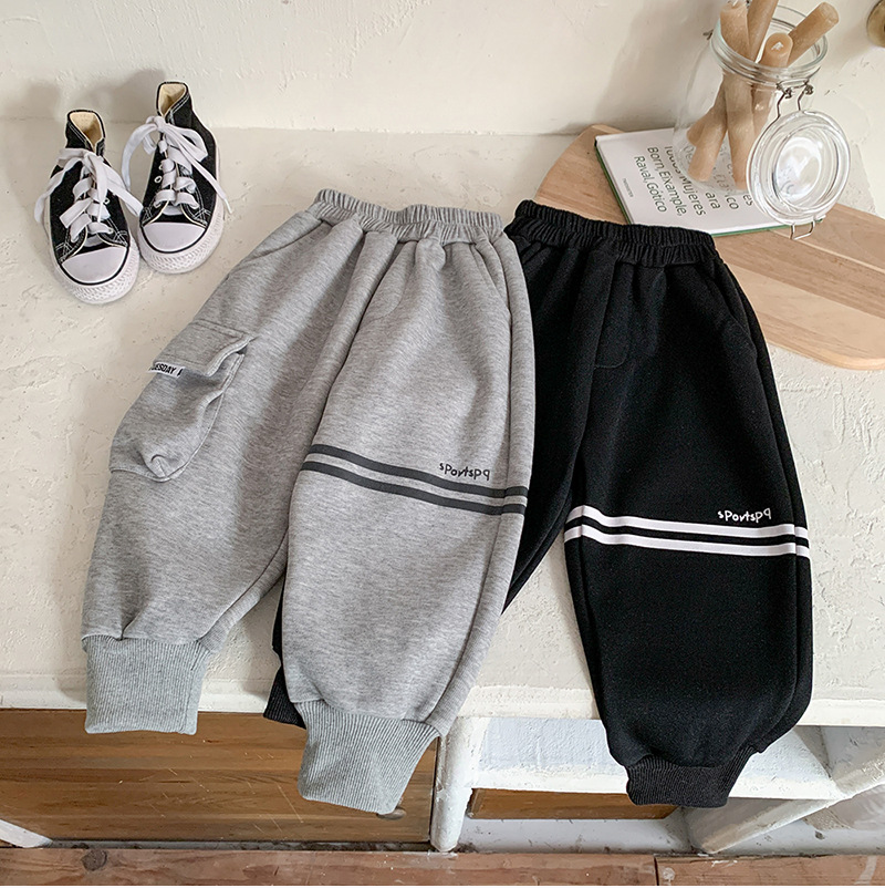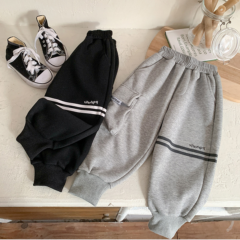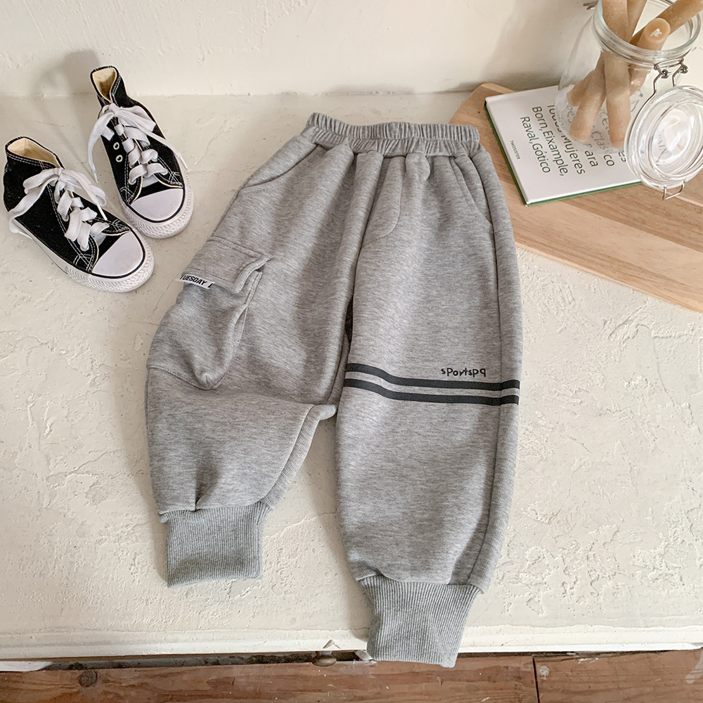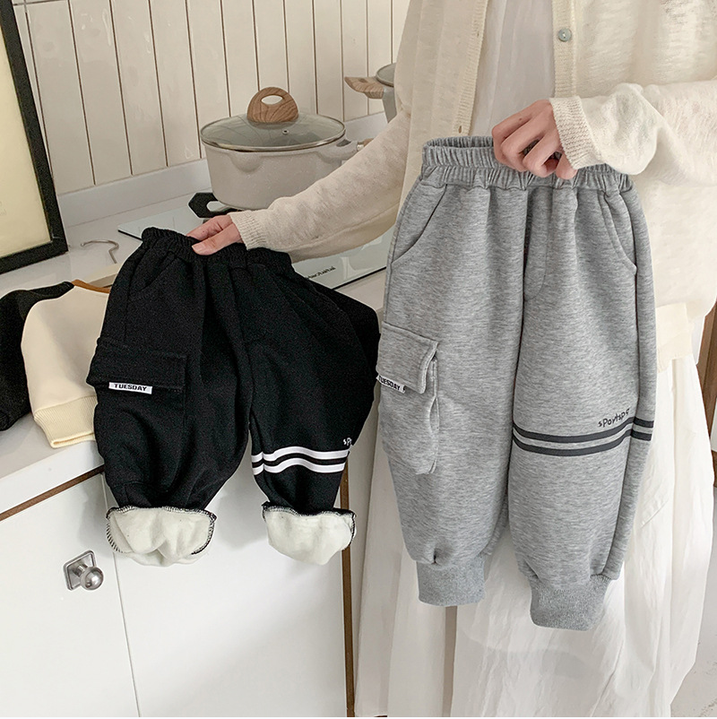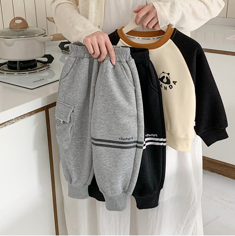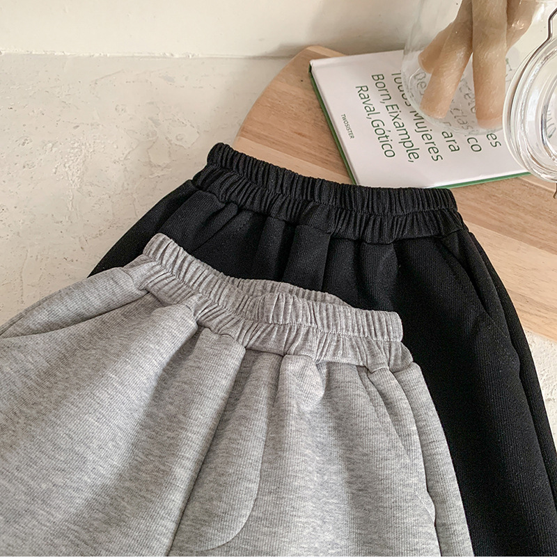 어린이 벨벳 바지 2024 새로운 가을 겨울 원피스 원피스 벨벳 한국 스타일 트렌디 기모 스포츠 바지
