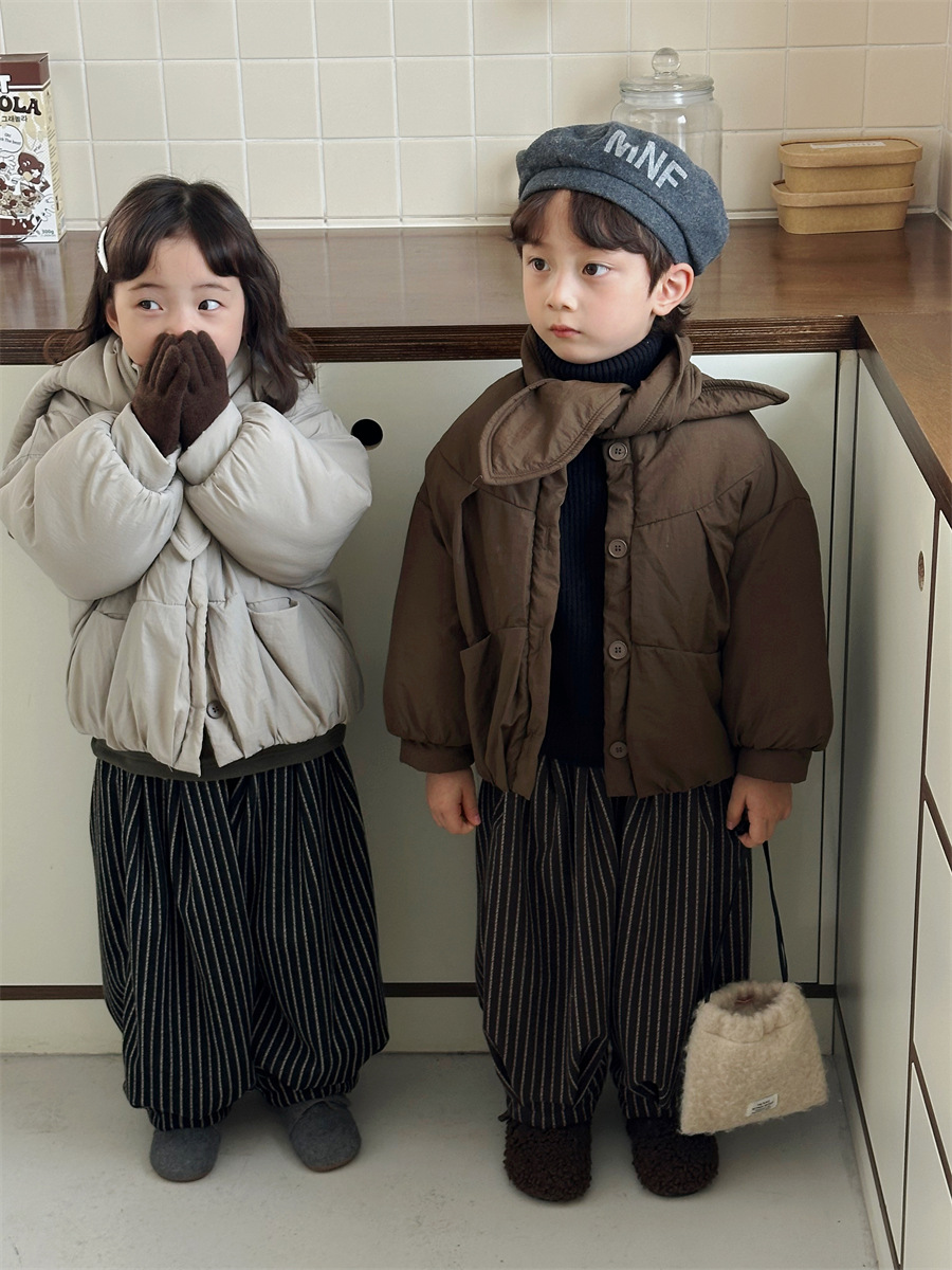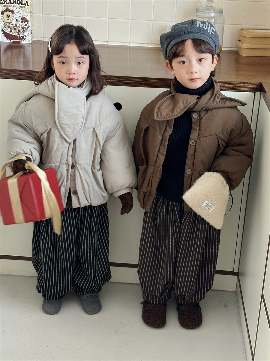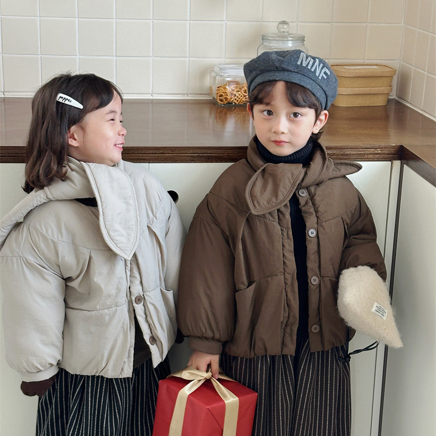 JiaYe 어린이 제품 2025년 겨울 신상품 스카프 면 재킷 남녀 아기용 두꺼운 패딩 코트스토어 가기