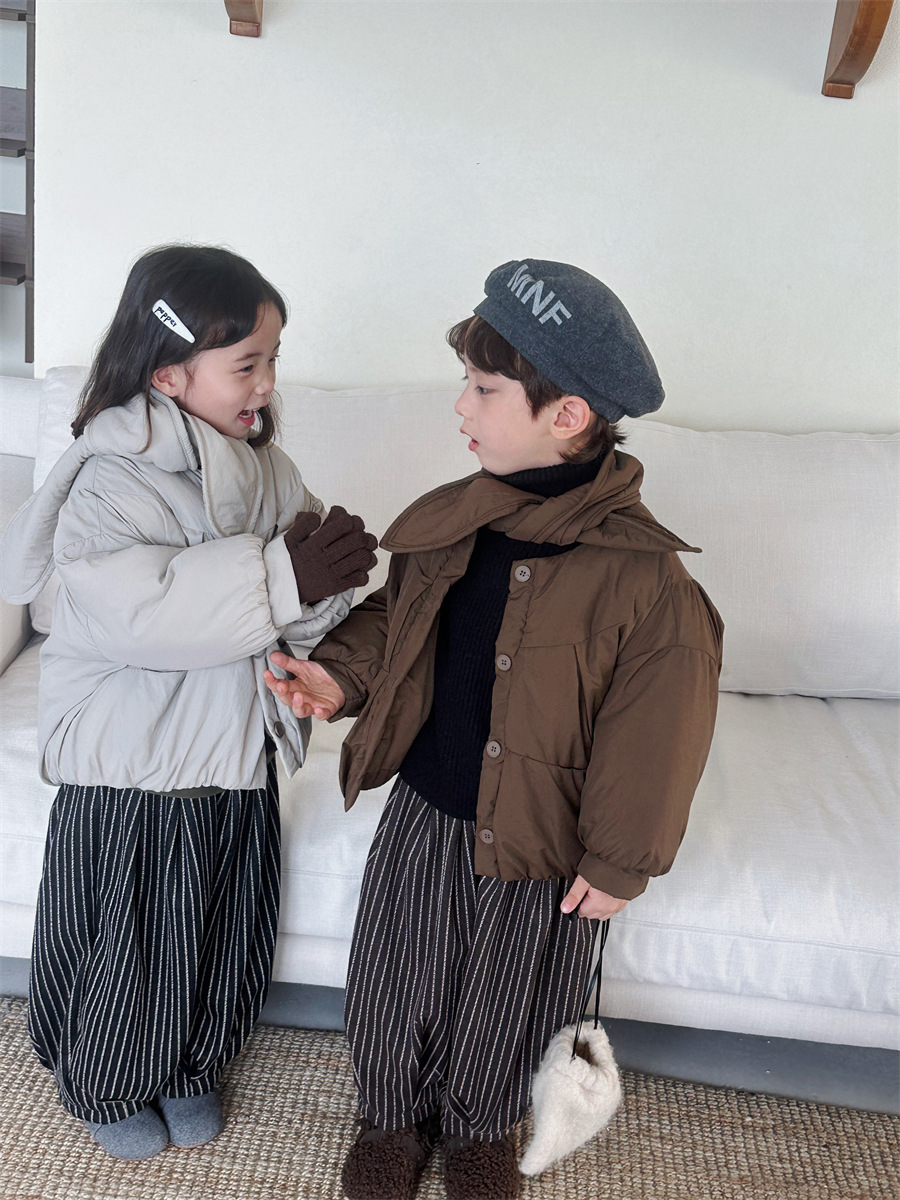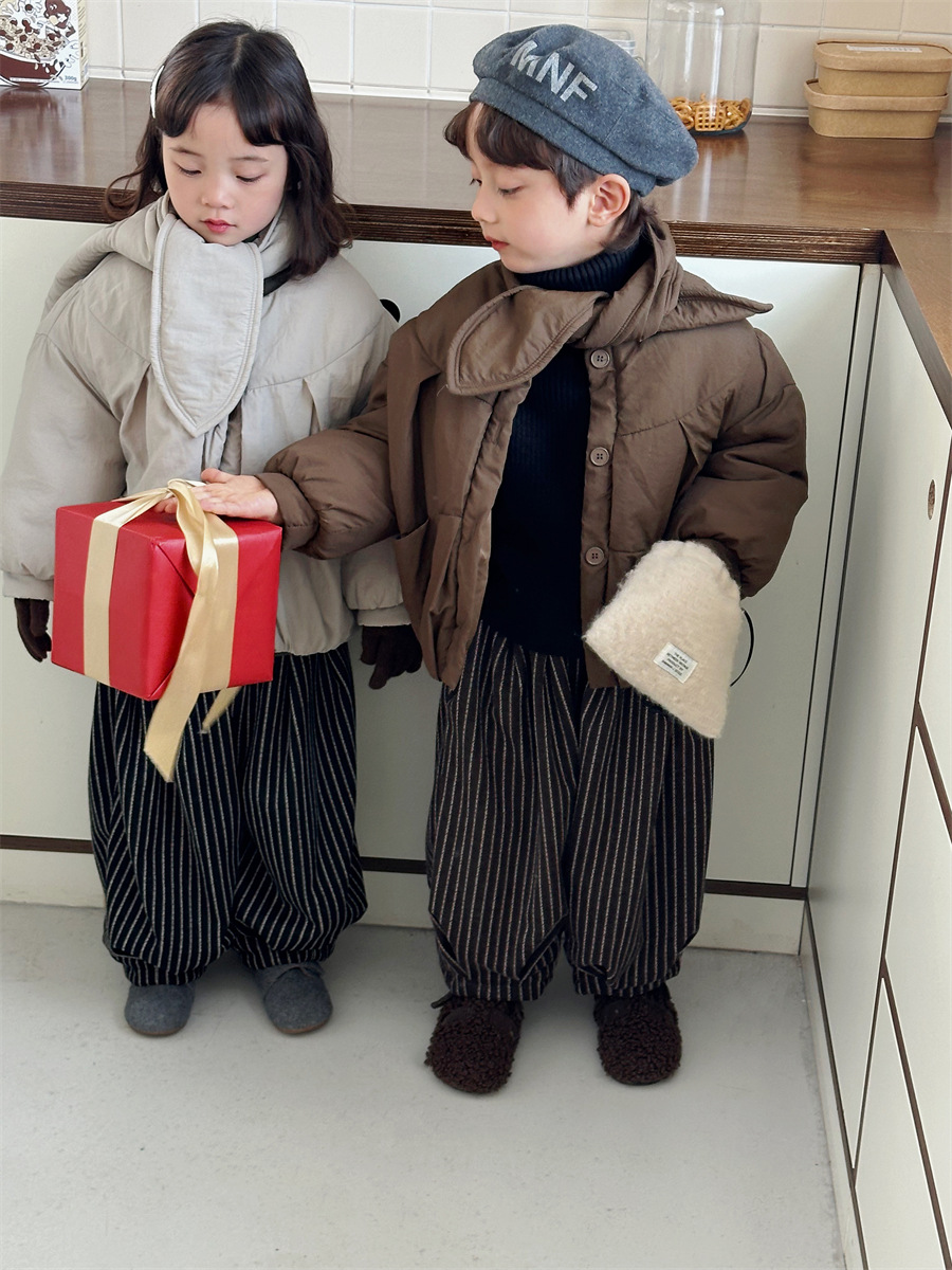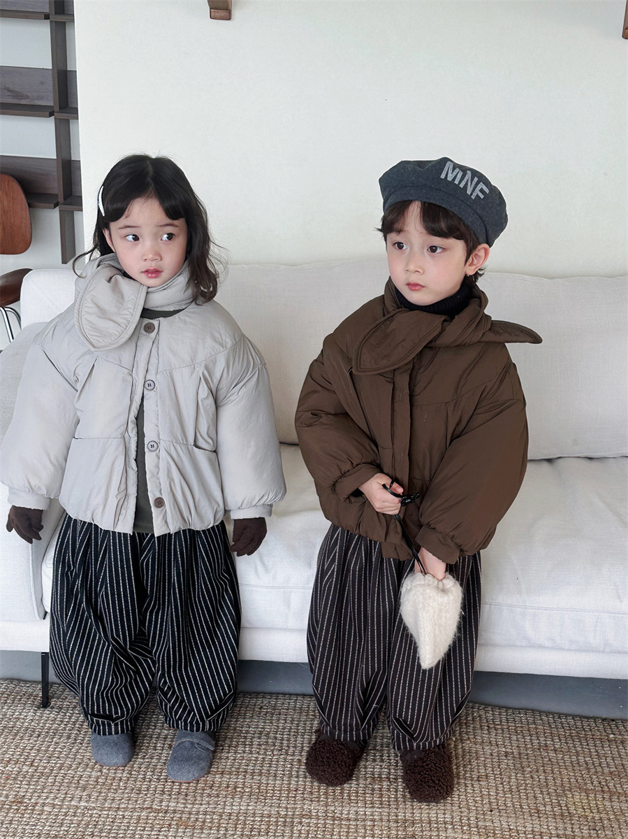 JiaYe 어린이 제품 2025년 겨울 신상품 스카프 면 재킷 남녀 아기용 두꺼운 패딩 코트스토어 가기