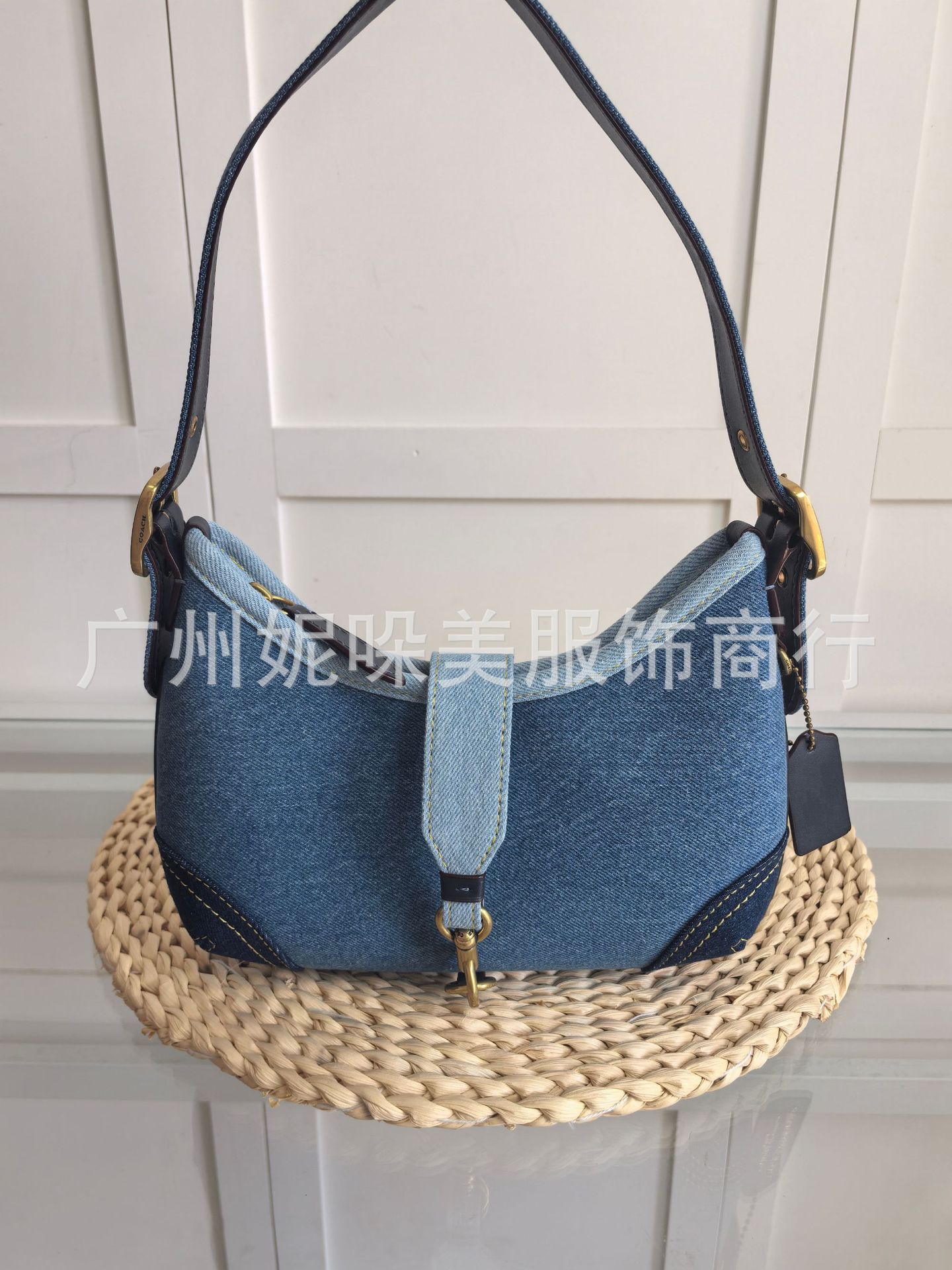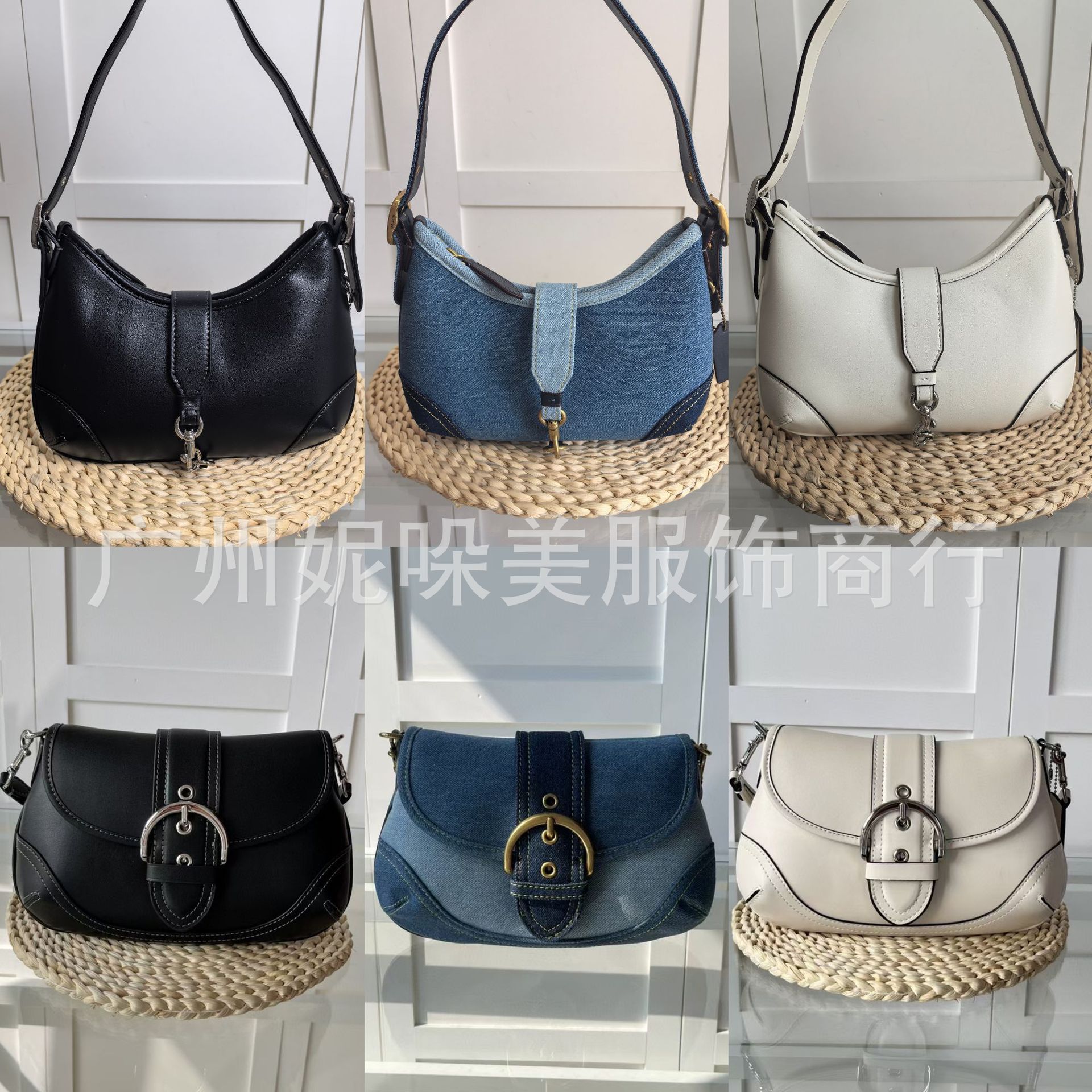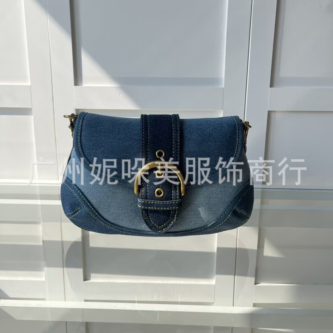 새로운 C Ole 여성용 안장 완두콩 가방 하프 문 가방 데님 패브릭 가죽 어깨 언더암 가방 핸드백스토어 가기