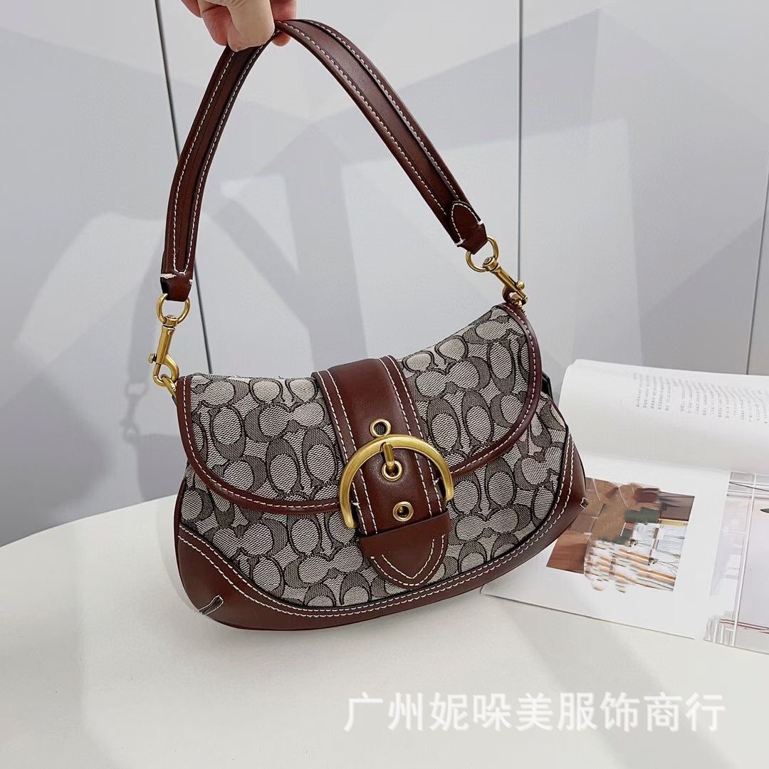 새로운 C Ole 여성용 안장 완두콩 가방 하프 문 가방 데님 패브릭 가죽 어깨 언더암 가방 핸드백