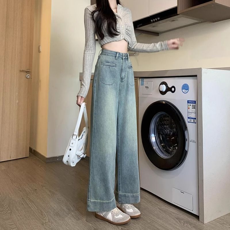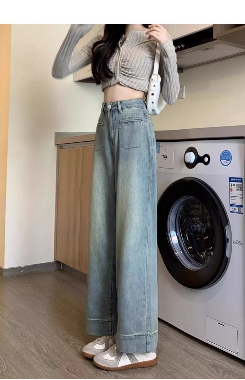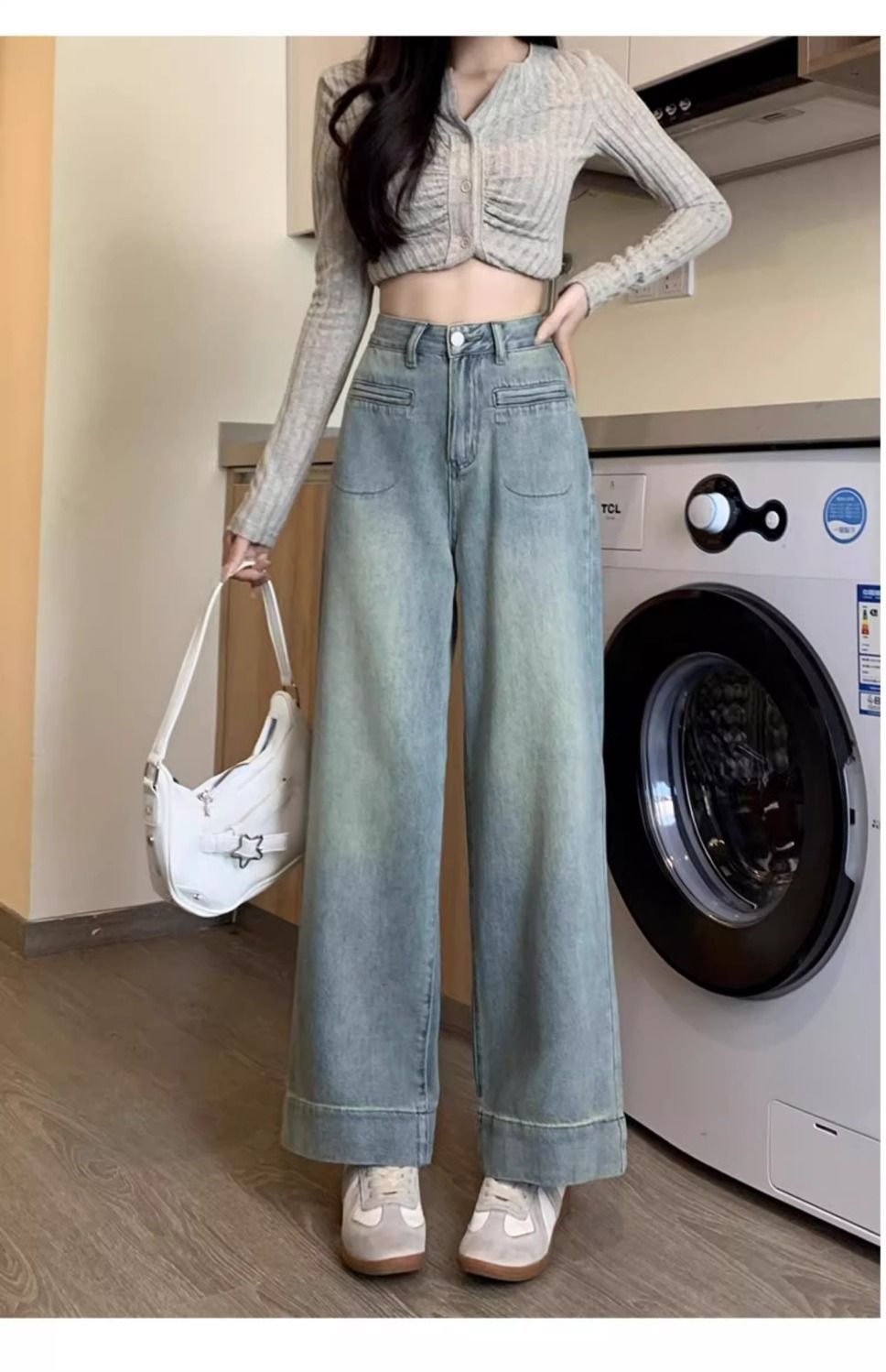 넓은 다리 청바지 여성의 가을 2024 새로운 스타일 작은 게으른 높은 허리 레트로 느슨한 스트레이트 바지 가을과 겨울스토어 가기