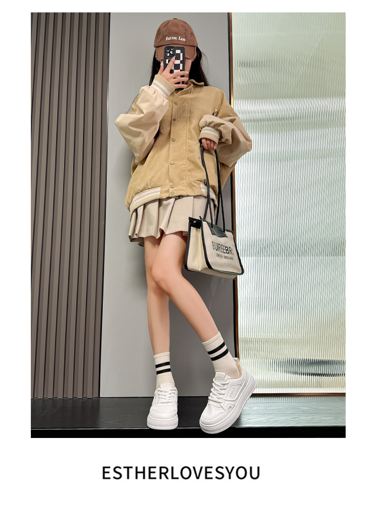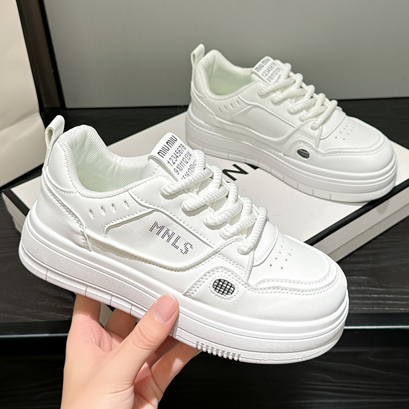 2024 봄과 가을 새로운 스포츠 통근 흰색 신발 여성 가죽 부드러운 밑창 캐주얼 올 매치 싱글 레이어 신발 유행 운동화스토어 가기