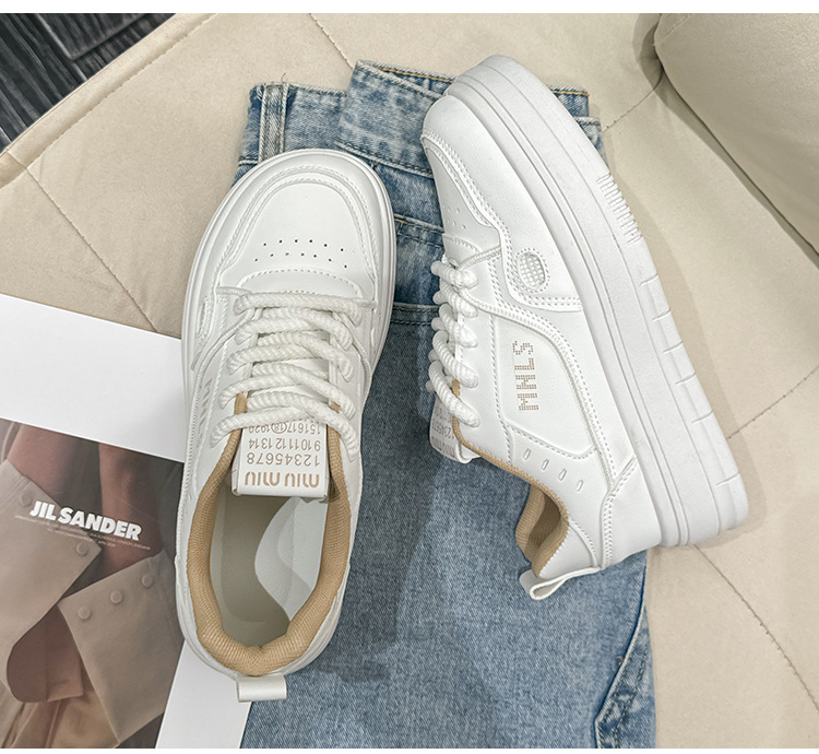 2024 봄과 가을 새로운 스포츠 통근 흰색 신발 여성 가죽 부드러운 밑창 캐주얼 올 매치 싱글 레이어 신발 유행 운동화