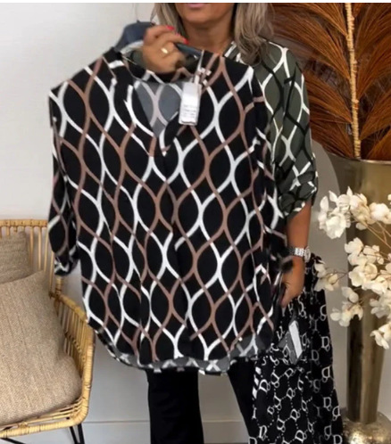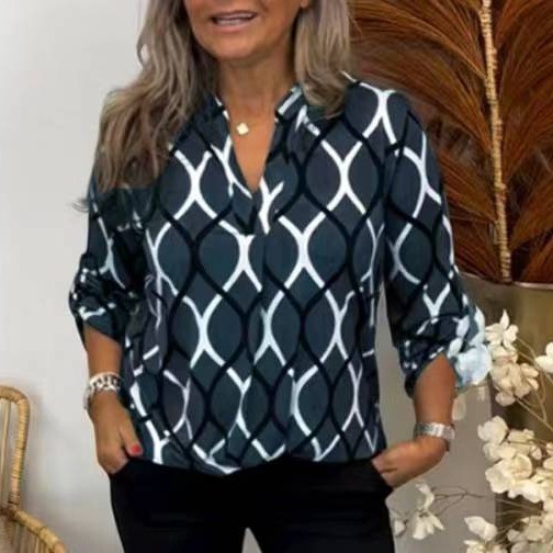 2024 새로운 봄과 가을 국경 폭발 기하학적 인쇄 긴 소매 Lel 여성용 셔츠 탑 POD 원피스 사용자 정의스토어 가기