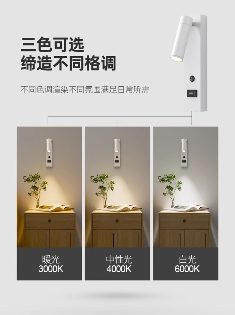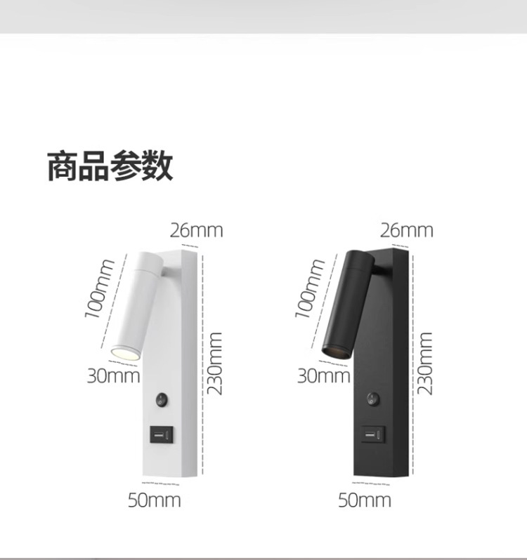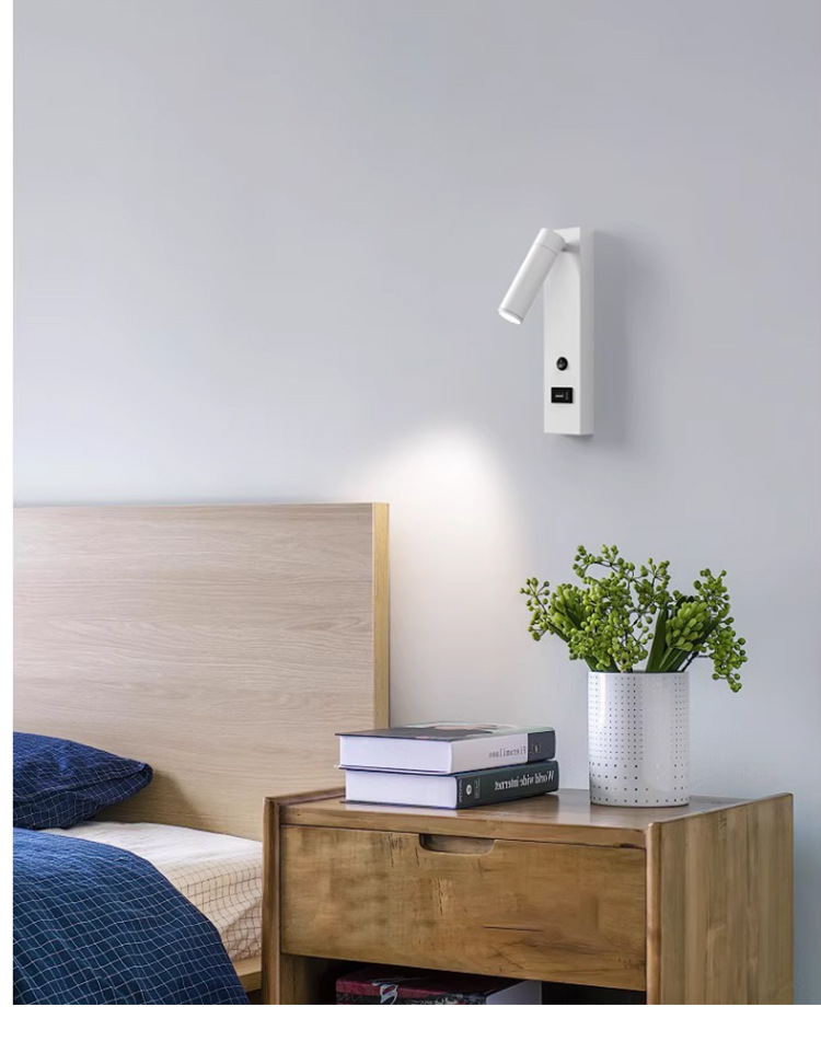 밍이 장착 된 독서 램프 홈스테이 호텔 침대 옆 USB 벽 램프 스포트라이트 휴대 전화 충전식 램프 홈 바 Typec 침대 램프