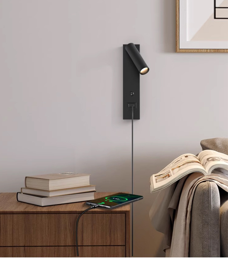 밍이 장착 된 독서 램프 홈스테이 호텔 침대 옆 USB 벽 램프 스포트라이트 휴대 전화 충전식 램프 홈 바 Typec 침대 램프스토어 가기