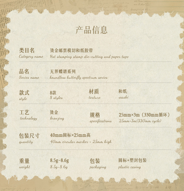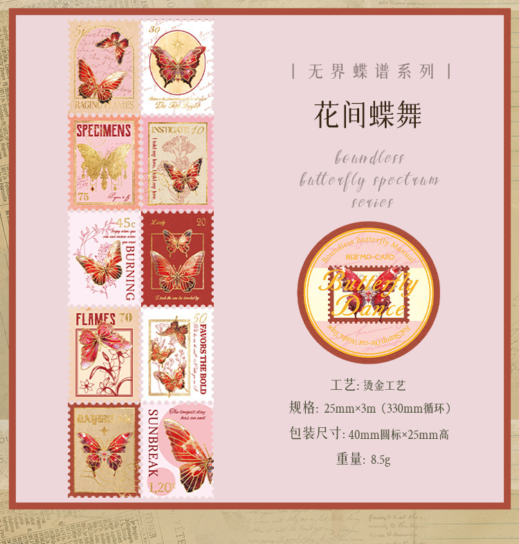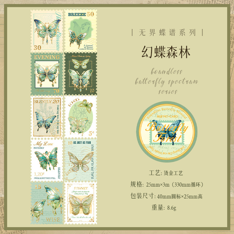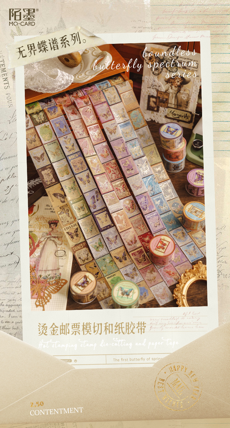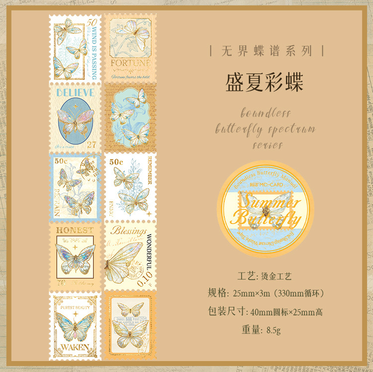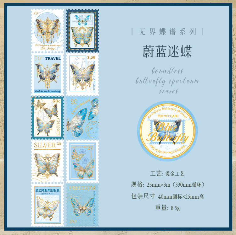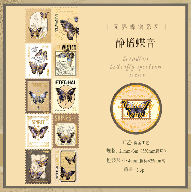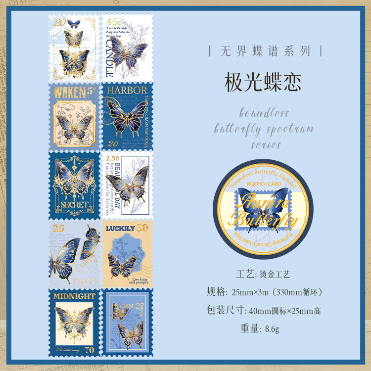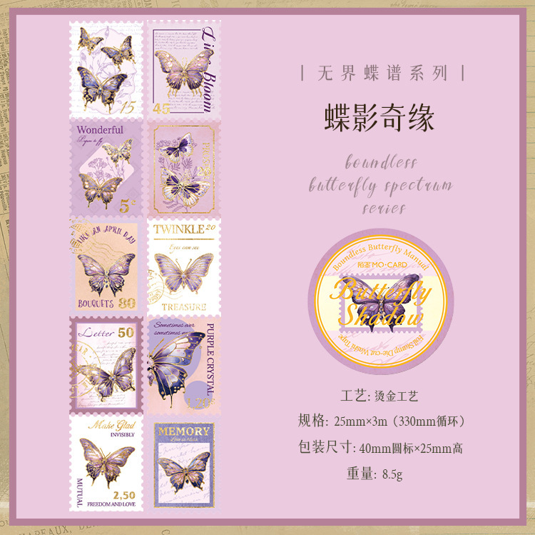 모 잉크 청동 및 종이 스탬프 테이프 경계선없는 나비 스펙트럼 시리즈 복고풍 손 계정 DIY 소재 사이클 장식 스티커스토어 가기