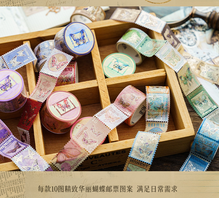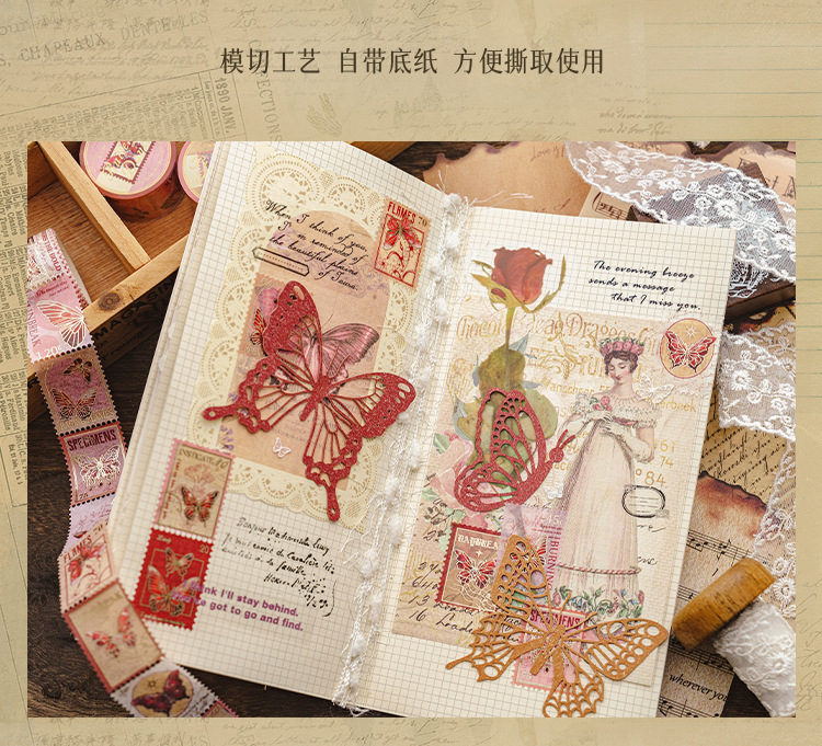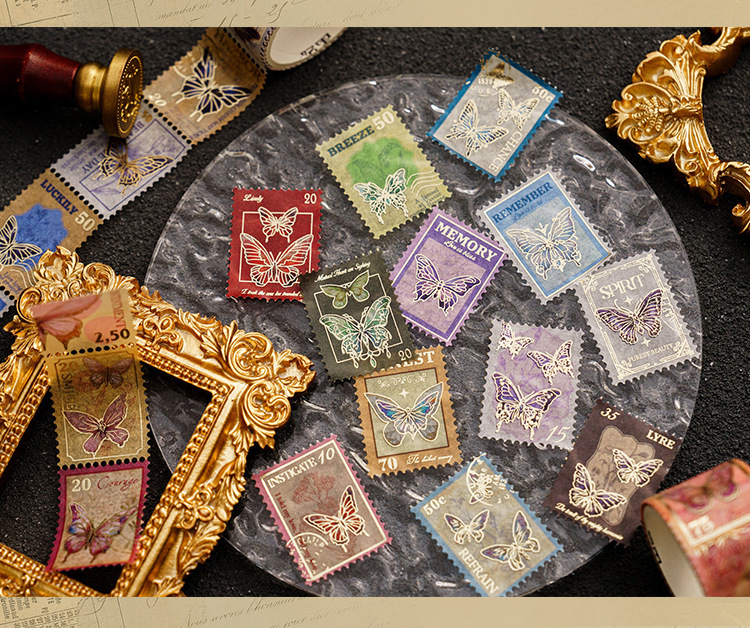 모 잉크 청동 및 종이 스탬프 테이프 경계선없는 나비 스펙트럼 시리즈 복고풍 손 계정 DIY 소재 사이클 장식 스티커