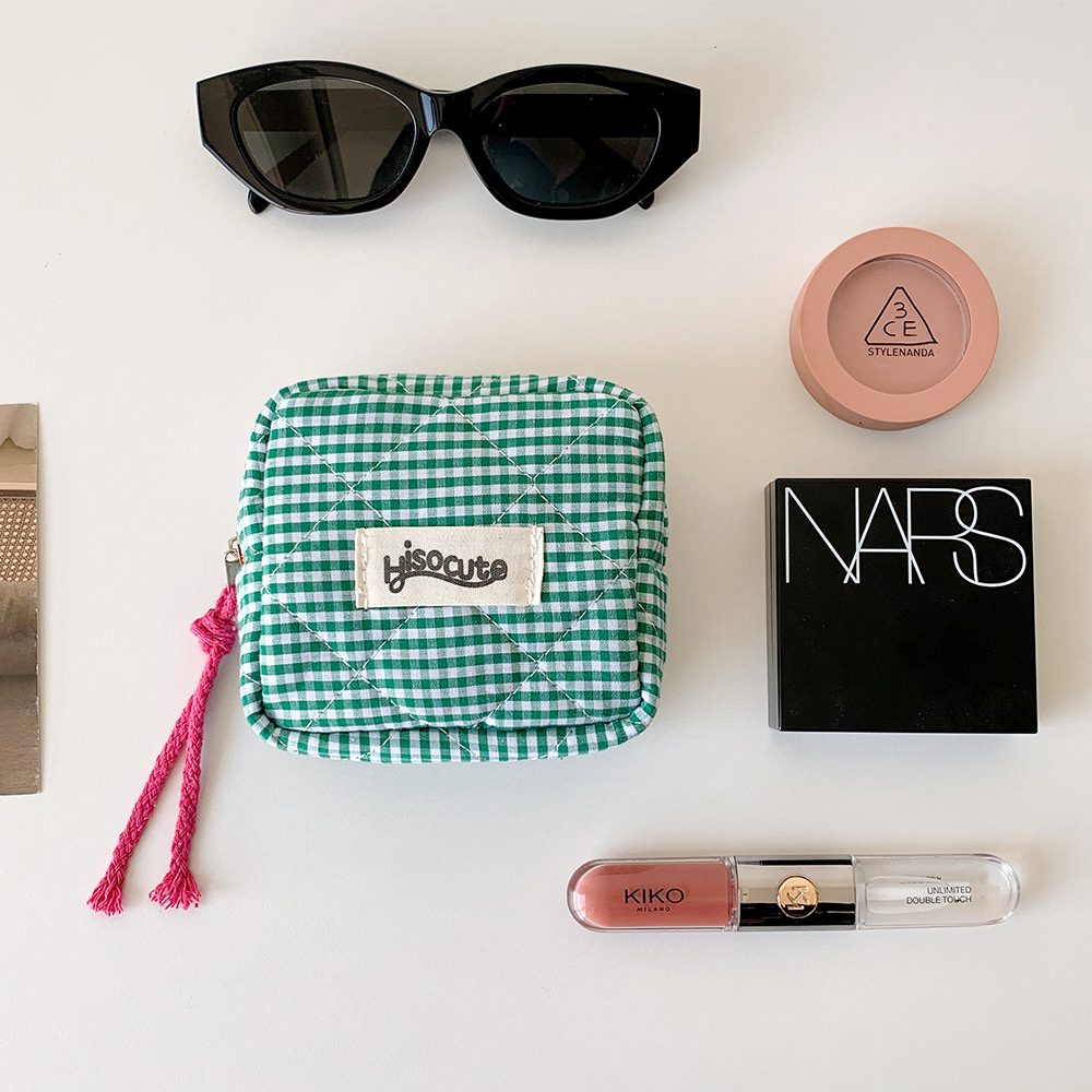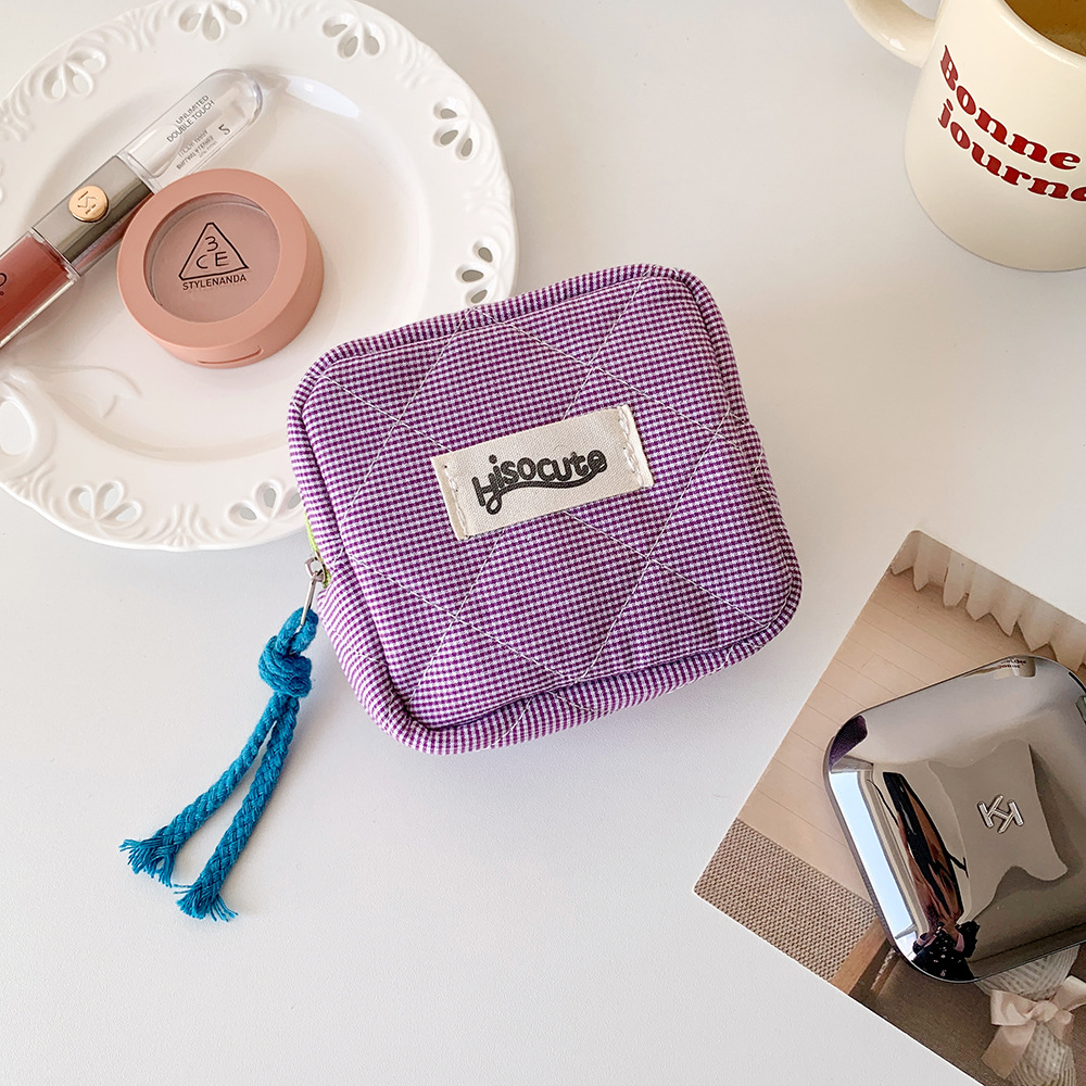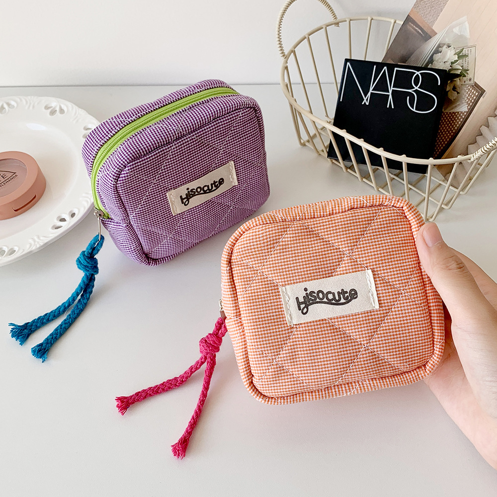 인 한국식 격자 무늬 작은 광장 가방 소녀의 휴대용 휴대용 입 빨간 봉투 헤드셋 보관 가방 학생 식사 카드 보관 가방