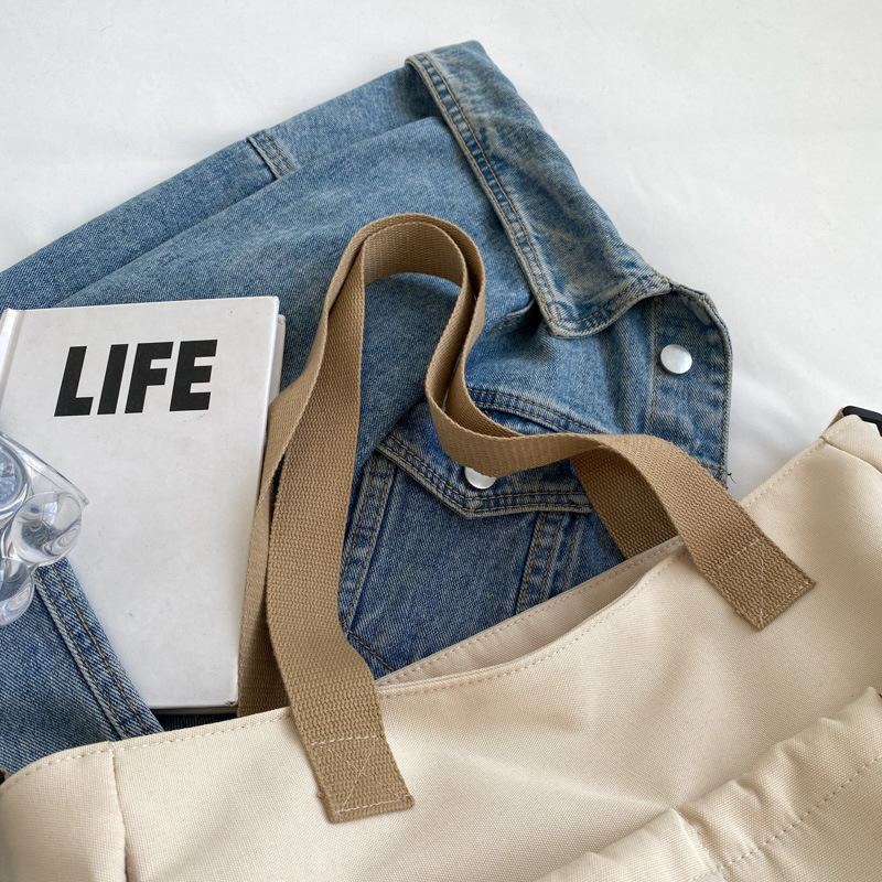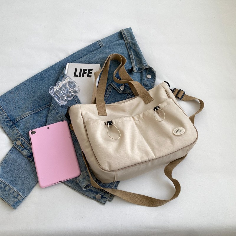 2024 새로운 한국 스타일 대용량 가방 여성 유행 패션 통근 핸드백 대학생 캔버스 크로스 바디 토트