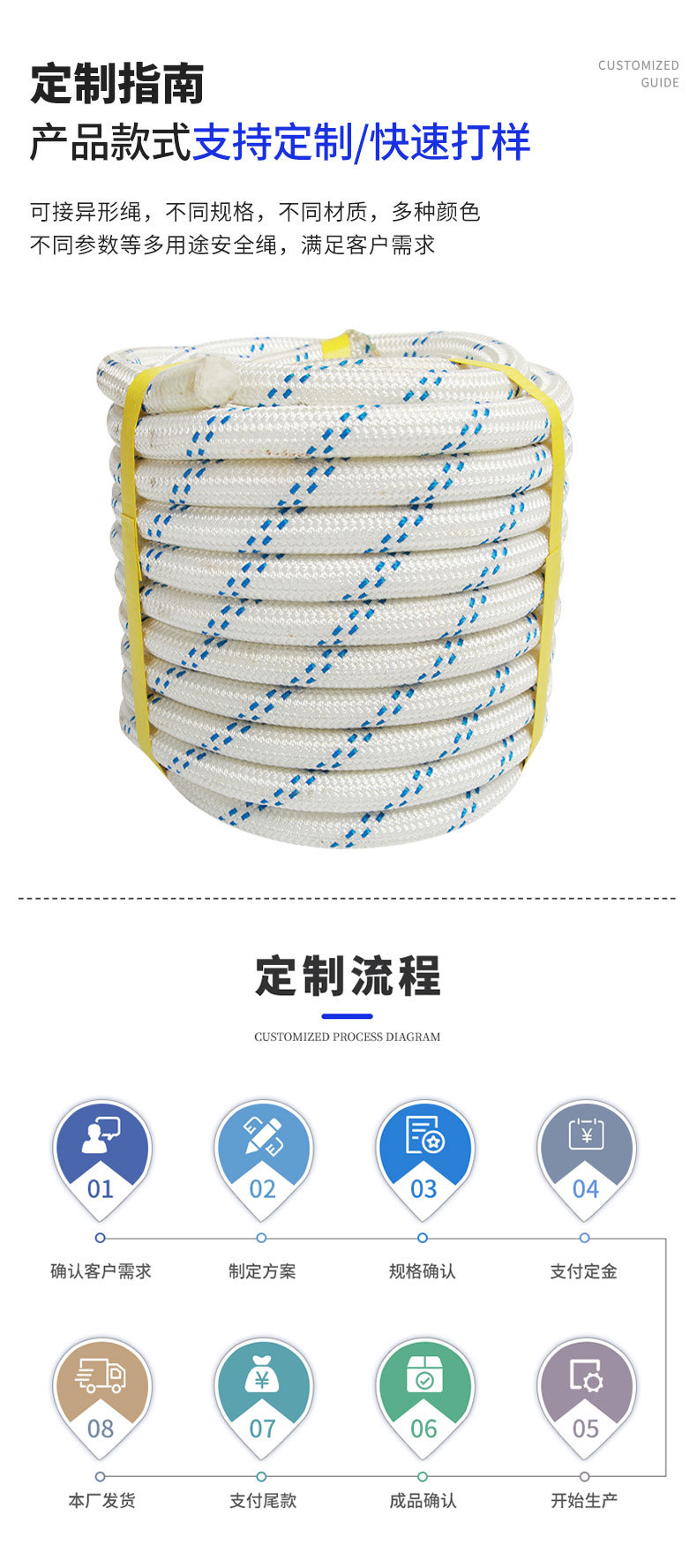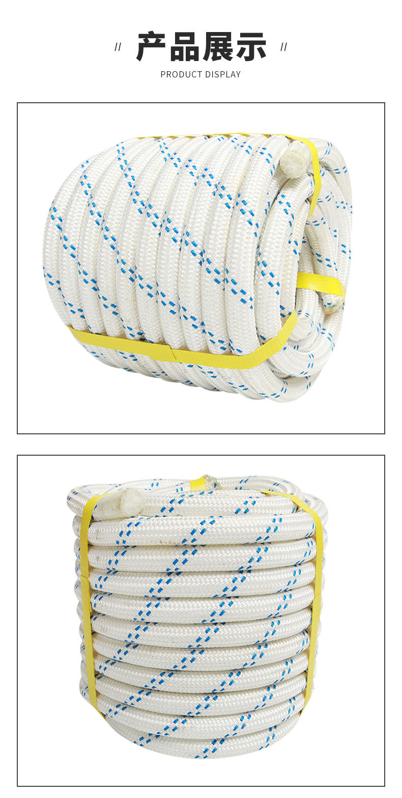 높은 분자 폴리에틸렌 로프 등반 로프 높은 고도 작업 바위 등반 로프 속도 드롭 스틸 와이어 코어 구조 안전 로프 도매