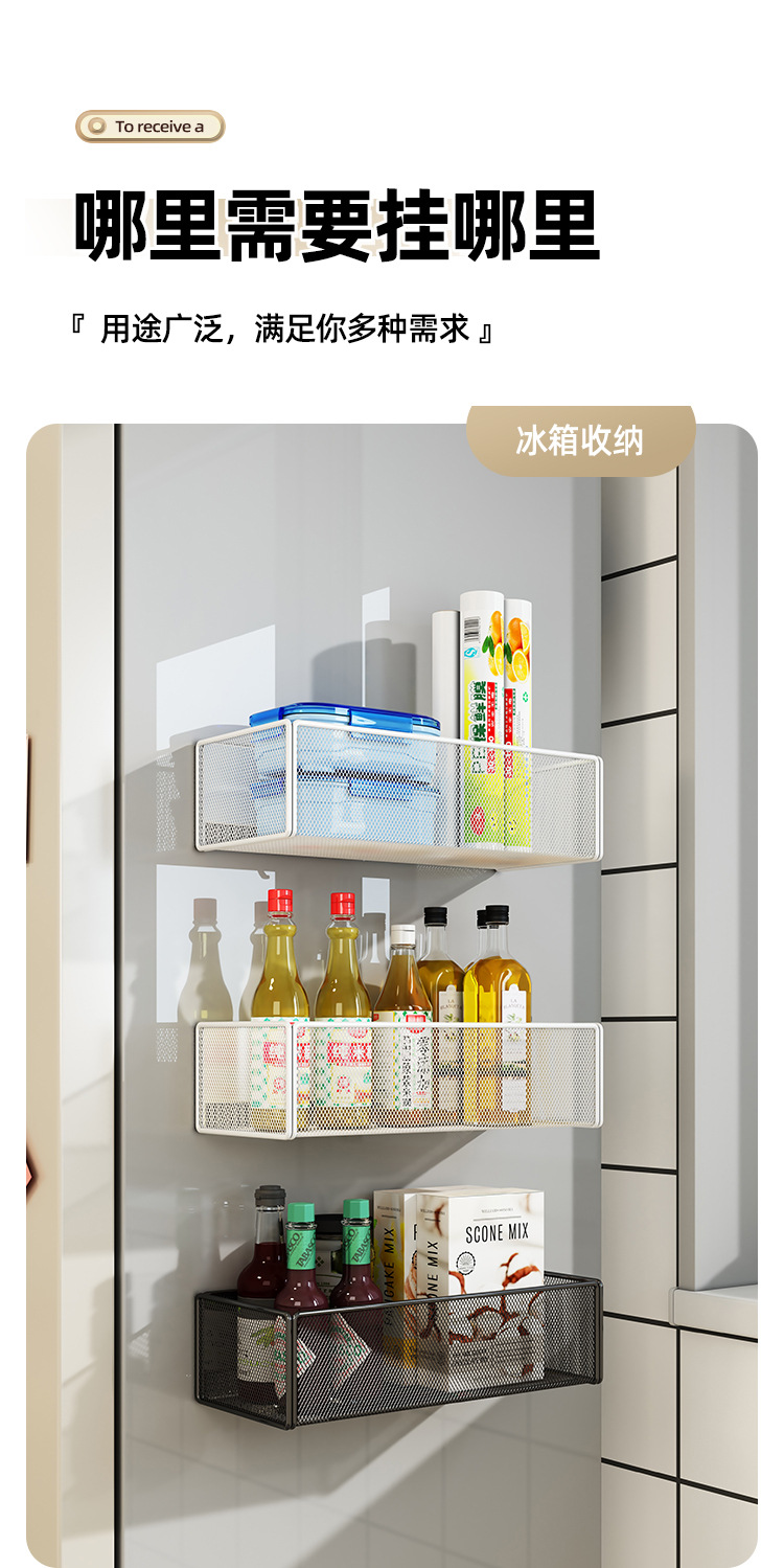 자기 흡입 냉장고 랙 사이드 스토리지 박스 일본식 주방 철 흡입 비 천공 측면 벽 랙 플라스틱 랩 선반