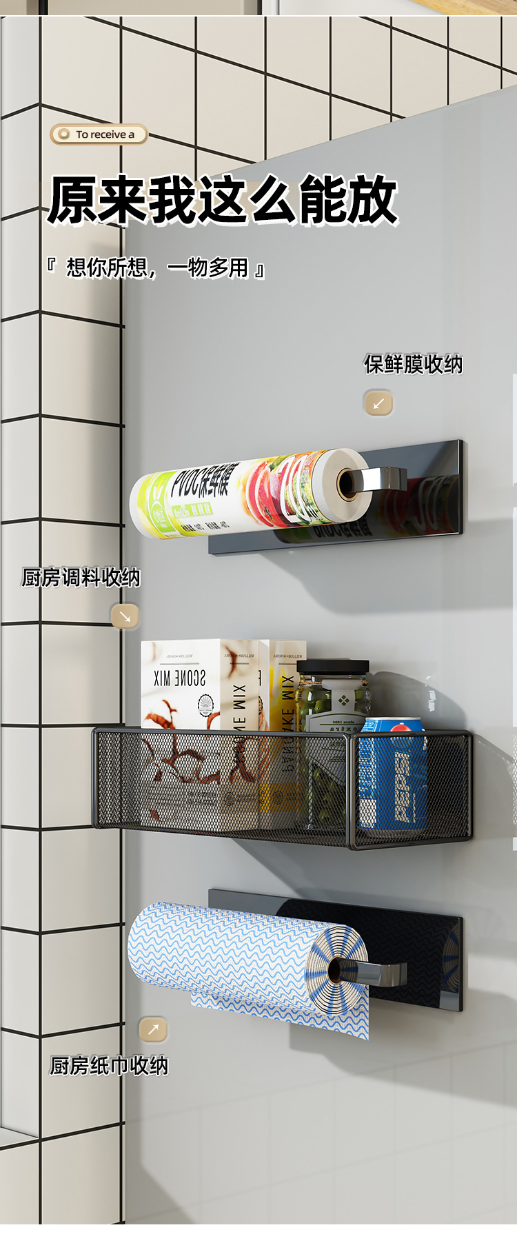자기 흡입 냉장고 랙 사이드 스토리지 박스 일본식 주방 철 흡입 비 천공 측면 벽 랙 플라스틱 랩 선반스토어 가기