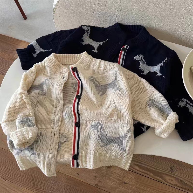 2024 봄 소년과 소녀 일본 유행 브랜드 만화 TB 리본 니트 카디건 아기 코트 어린이 스웨터