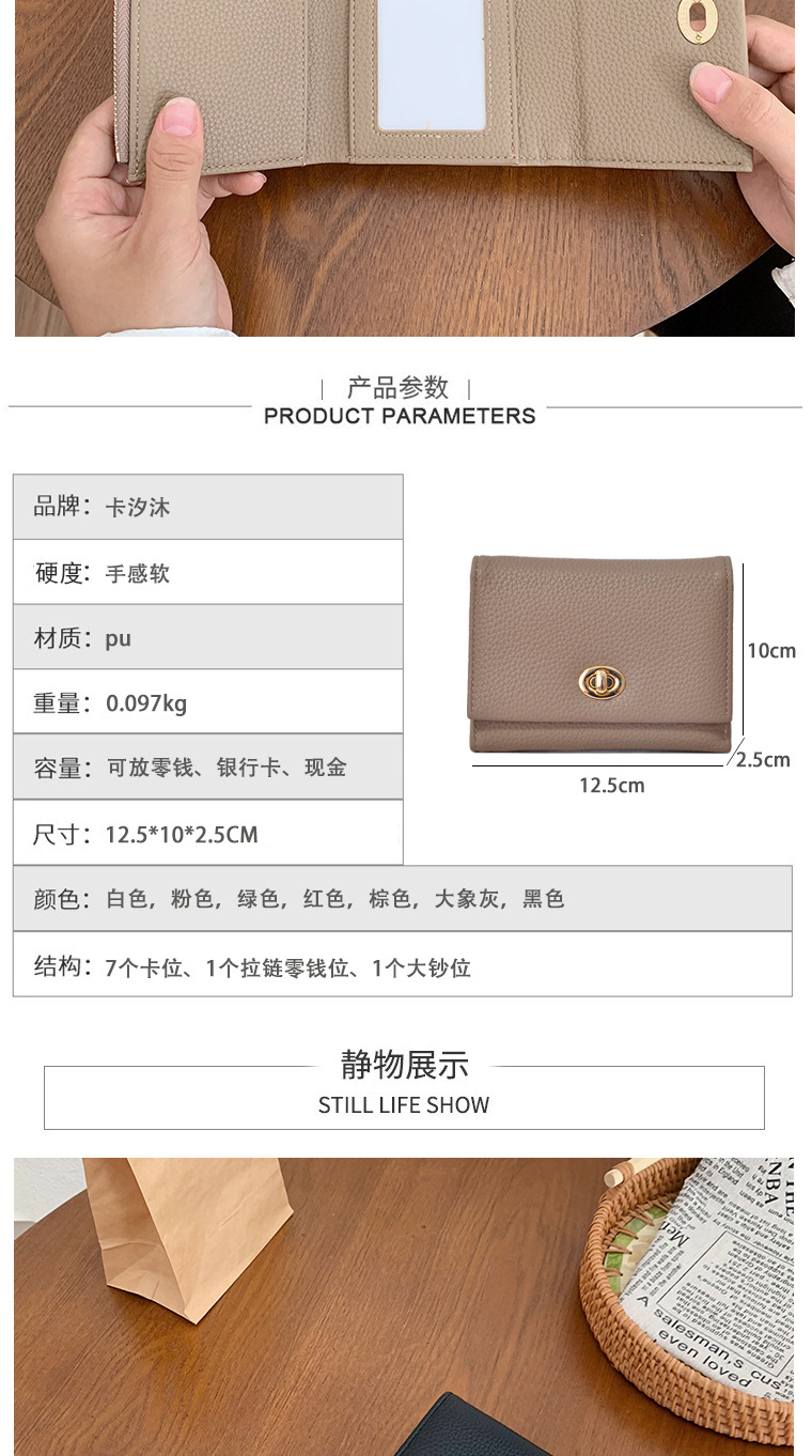 여성 짧은 지갑 새로운 한국 트렌드 단색 간단한 접이식 지갑 멀티 카드 지갑 동전 지갑 도매스토어 가기