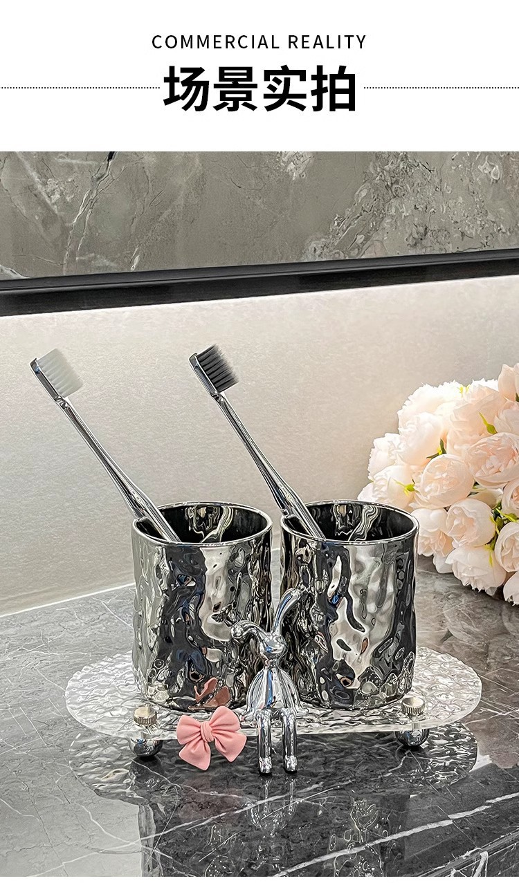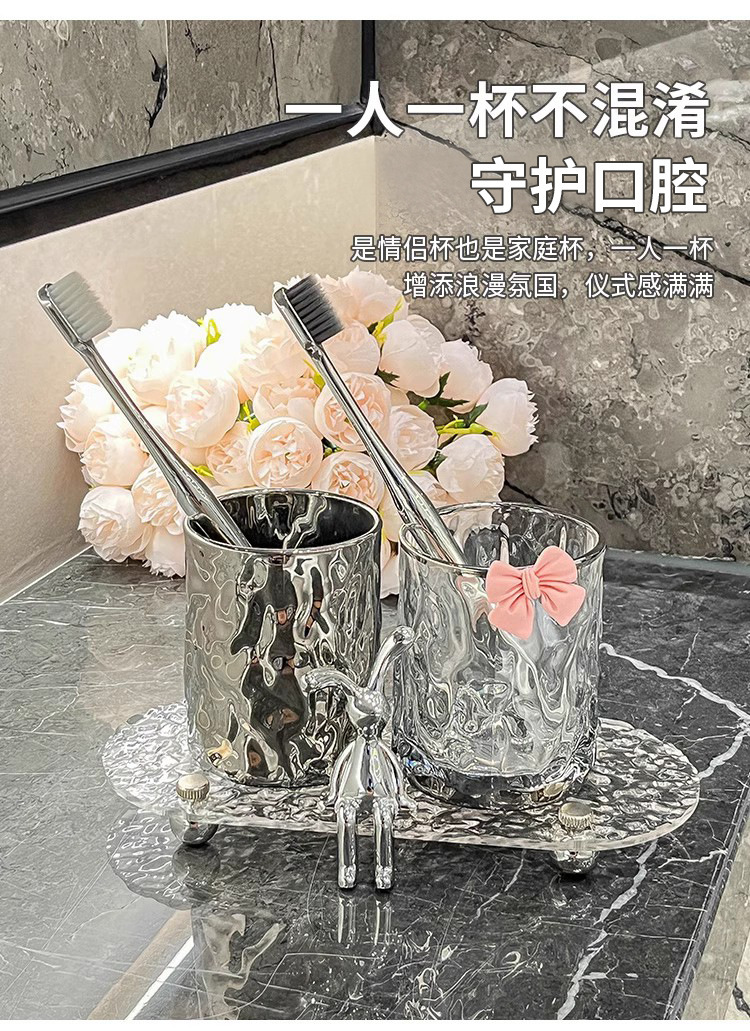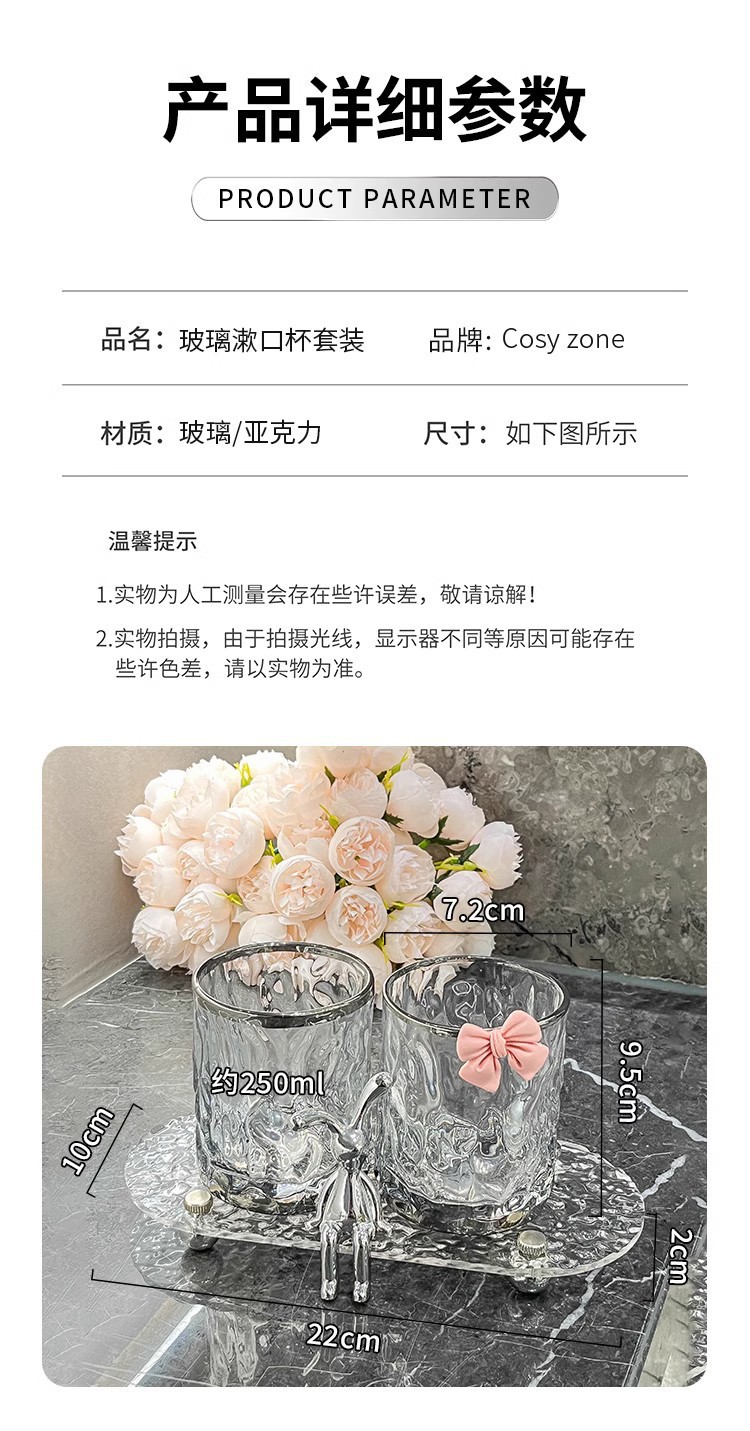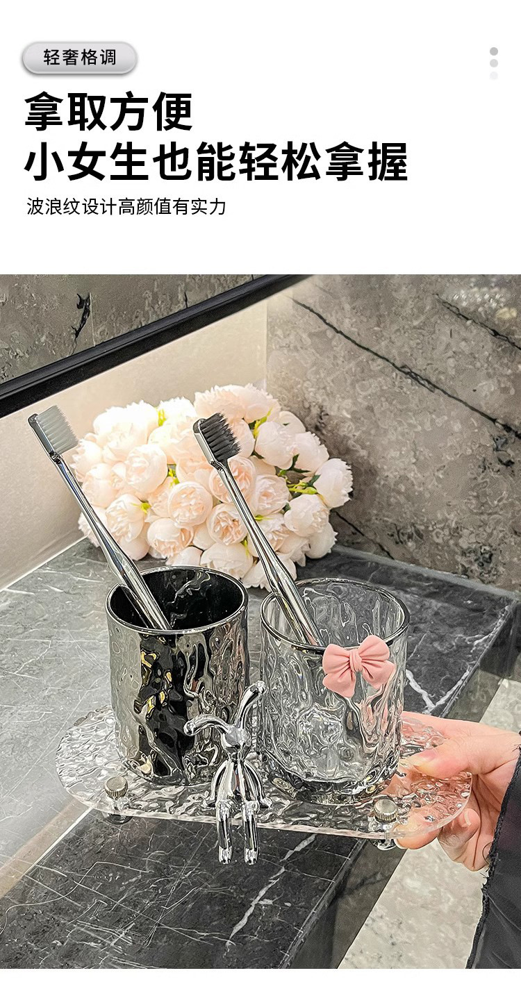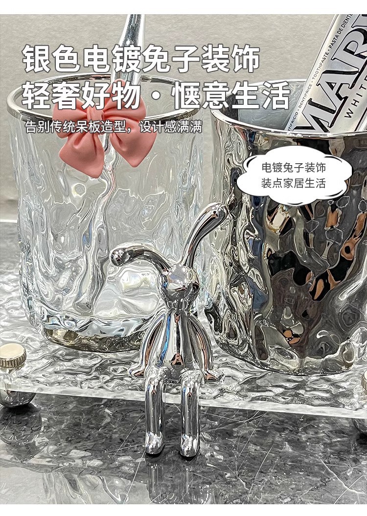홈 엔트리 럭셔리 유리 마우스 워시 컵 세트 창조적 인 높은 가치 커플 컵 귀여운 앉아 토끼 투명 마우스 워시 컵