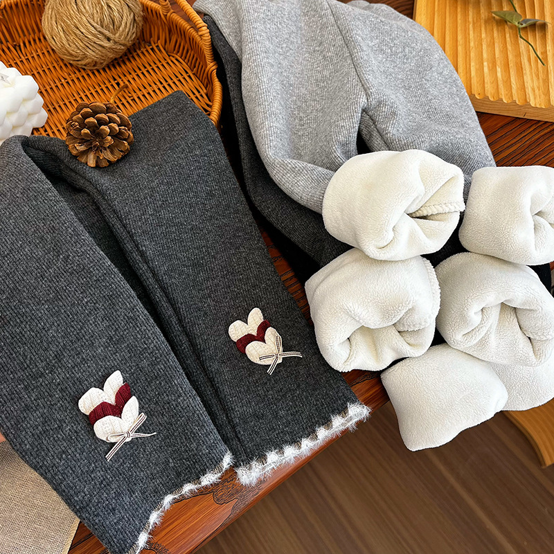 여아용 가을 겨울 신상 벨벳 레깅스 입체 삼색 하트 따뜻한 긴바지 일체형 벨벳 겨울옷 외출용스토어 가기