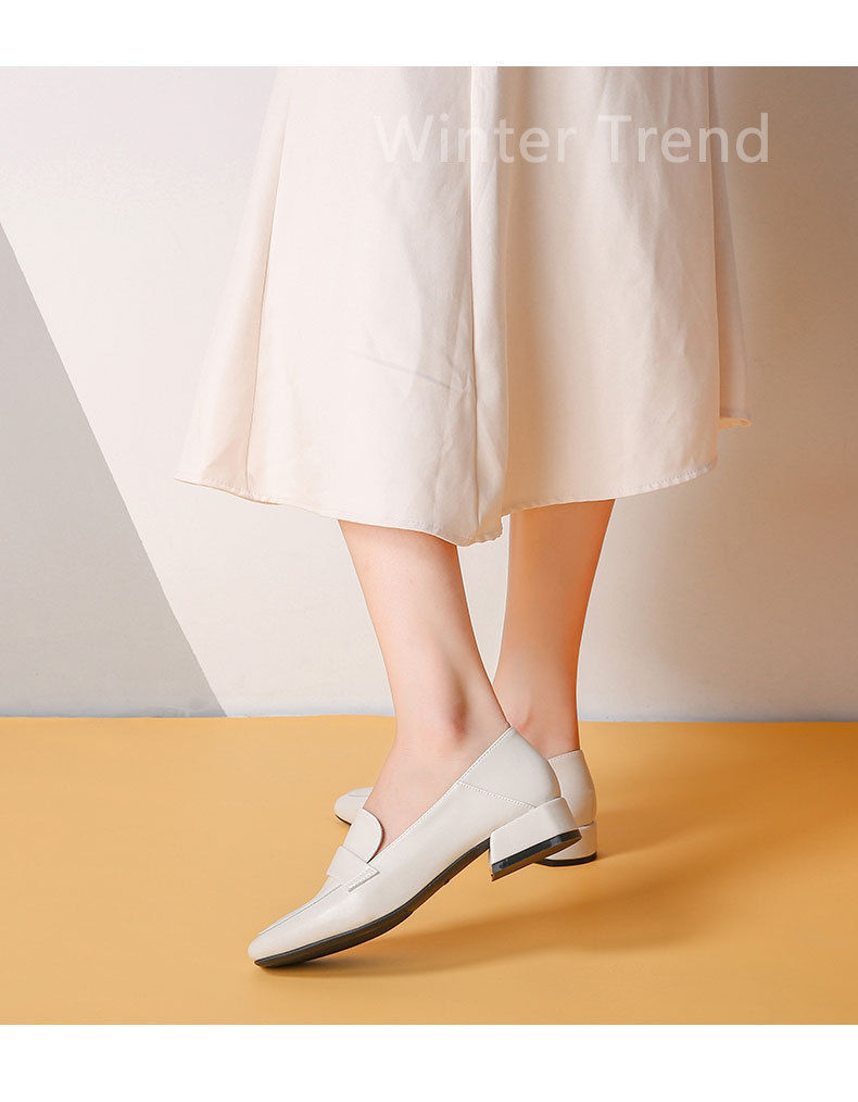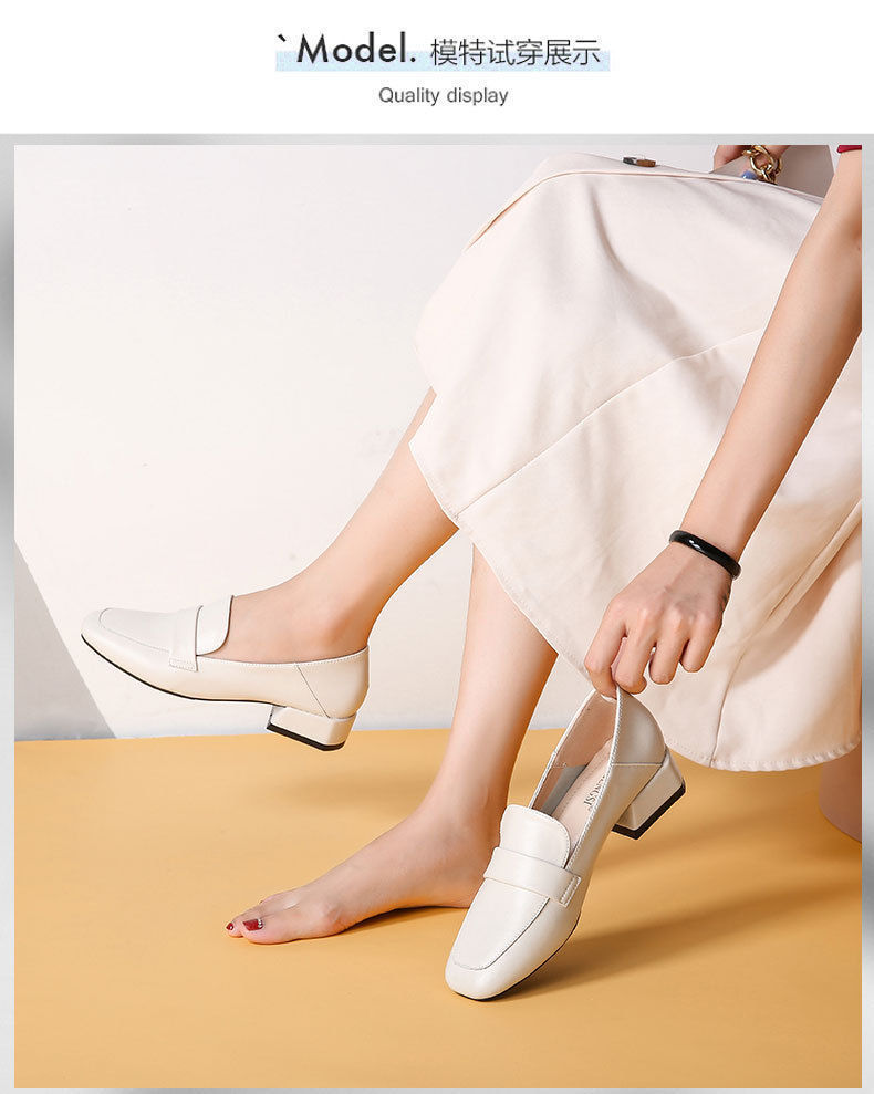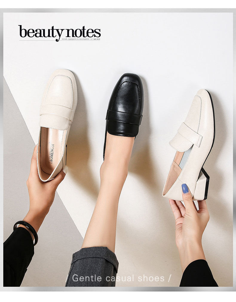 싱글 레이어 신발 여성 4 시즌 경량 가죽 신발 여성 두꺼운 힐 영국식 미드 힐 올 매치 로퍼 여성 신발스토어 가기