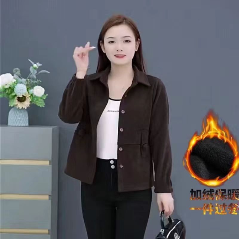 어머님의 가을 겨울 벨벳 코듀로이 숏 코트, 중노년 여성을 위한 새로운 스타일의 가디건, 두꺼운 재킷 상의