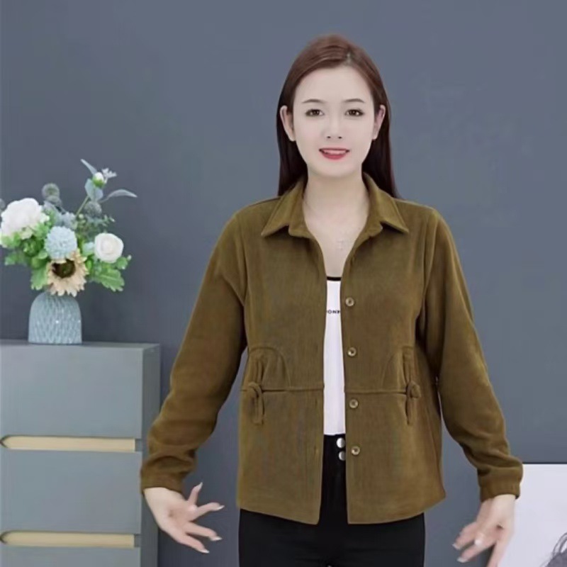 어머님의 가을 겨울 벨벳 코듀로이 숏 코트, 중노년 여성을 위한 새로운 스타일의 가디건, 두꺼운 재킷 상의스토어 가기
