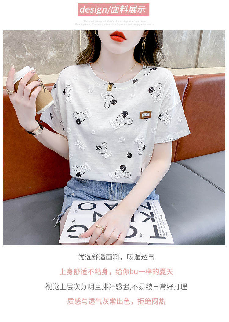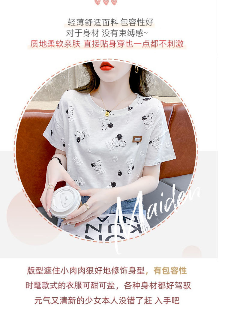 반팔 티셔츠 인스타그램 인기있는 여름 여성 어머니의 새로운 도착 한국식 인쇄 유행 느슨한 플러스 사이즈 통통녀 최고 유행