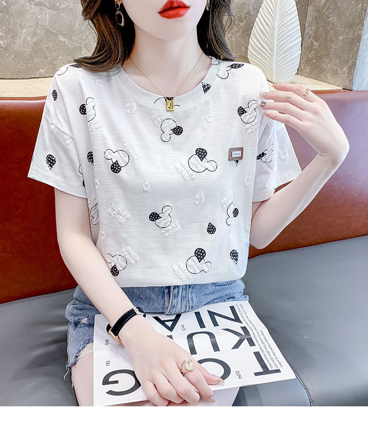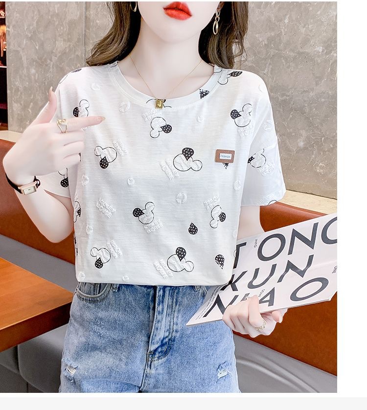 반팔 티셔츠 인스타그램 인기있는 여름 여성 어머니의 새로운 도착 한국식 인쇄 유행 느슨한 플러스 사이즈 통통녀 최고 유행스토어 가기