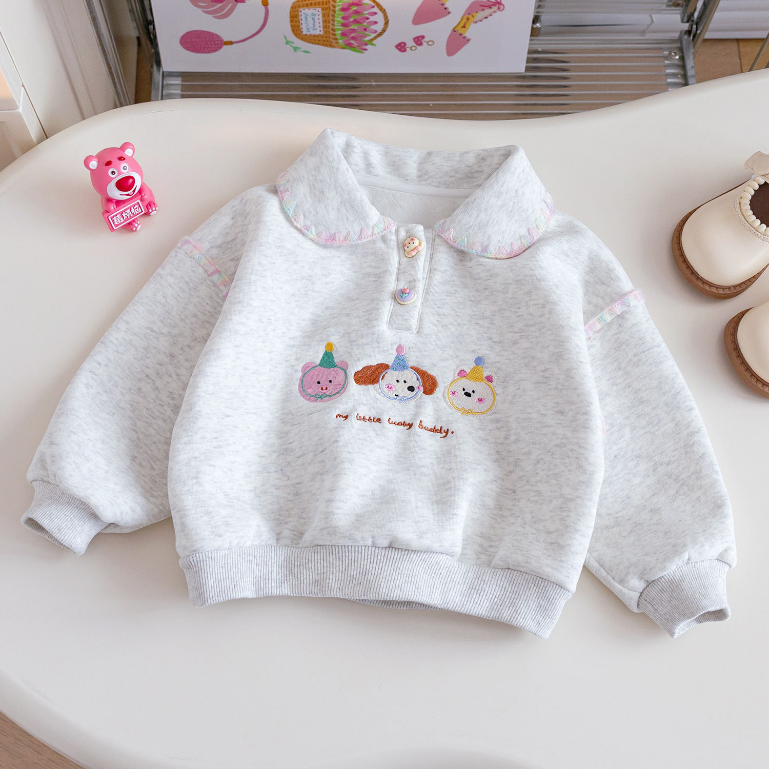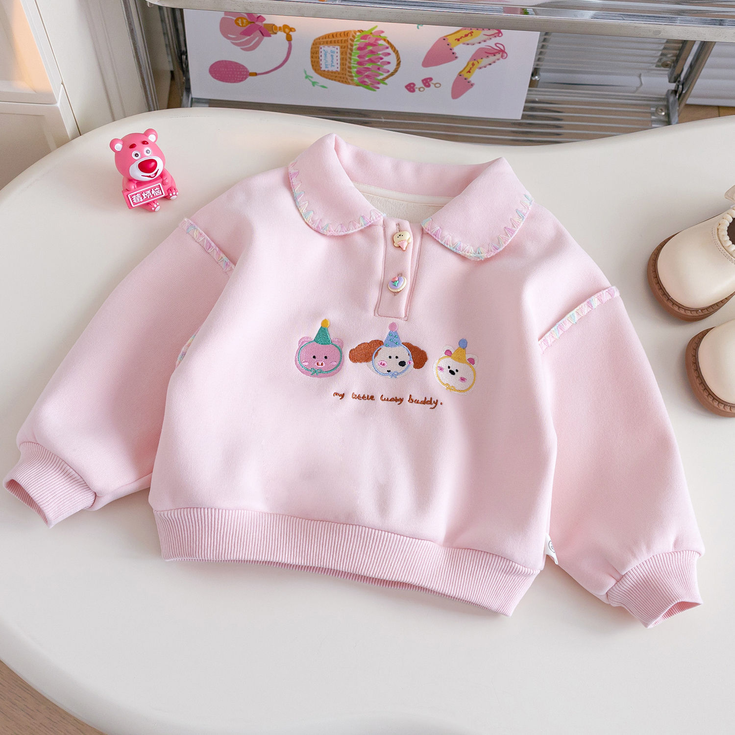 겨울 소녀 만화 프린트 플리스 스웨트셔츠 25 신상 스타일리시 아기 폴로 칼라 가을 겨울 긴팔 상의