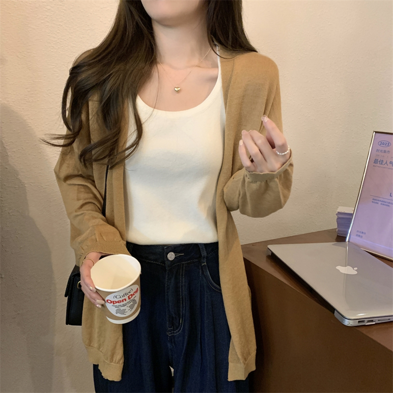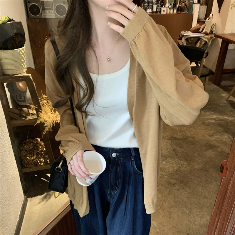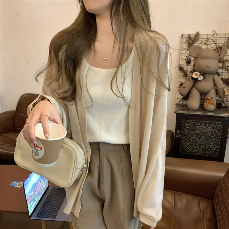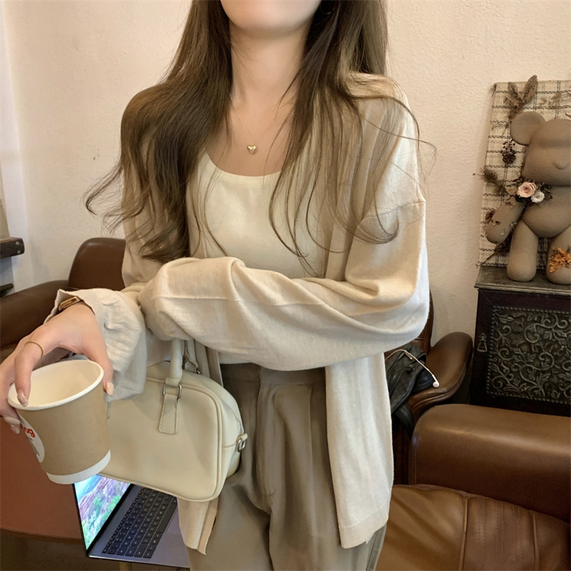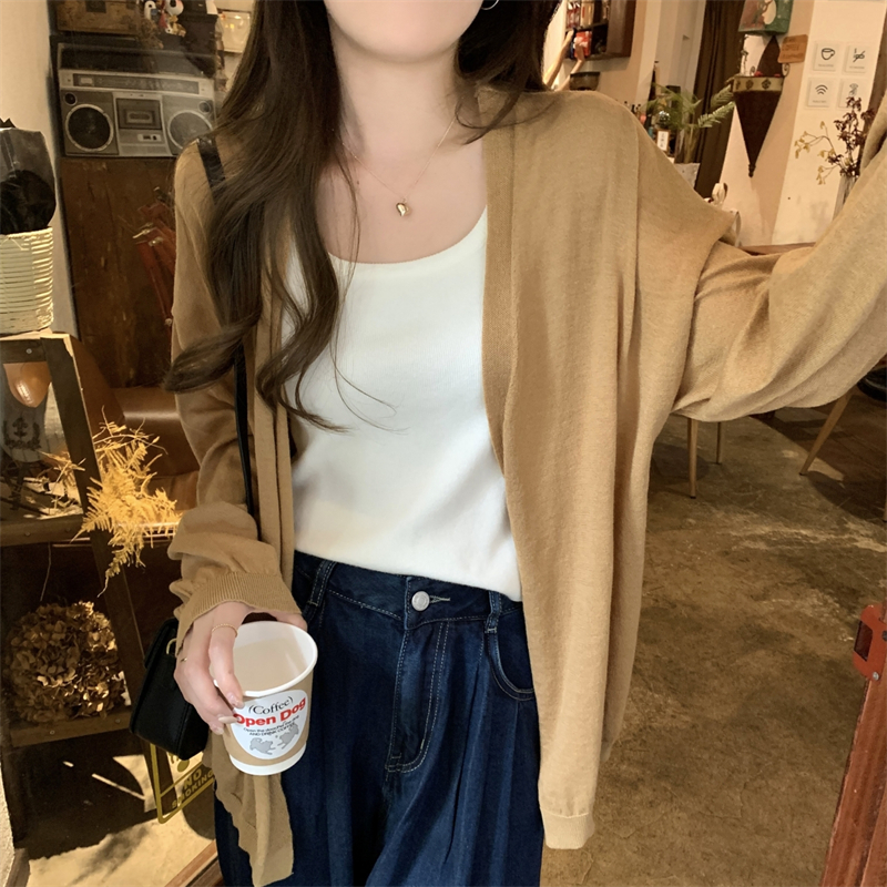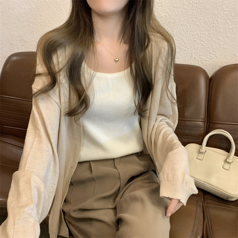 이른 가을 얇은 코트 여성의 2024 새로운 고급 휴식 게으른 스타일 느슨한 외부 니트 카디건 탑