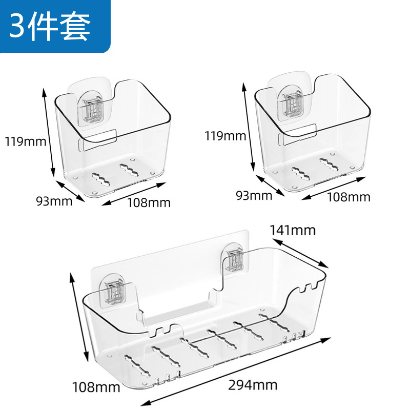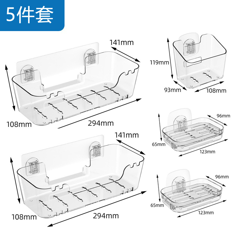 욕실 수납선반, 욕실 배수선반, 펀치 없는 수납선반, 벽에 흔적 없는 투명 욕실용품 수납