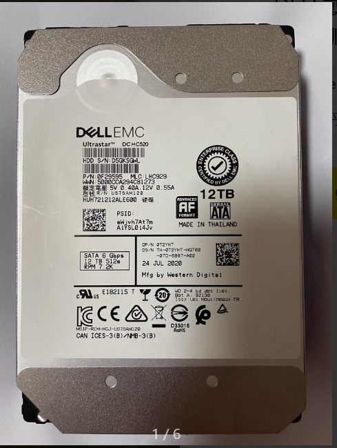 델 서버 하드 드라이브 엔터프라이즈 NAS 스토리지 어레이 하드 드라이브 12T 7.2K SATA 3.5 인치