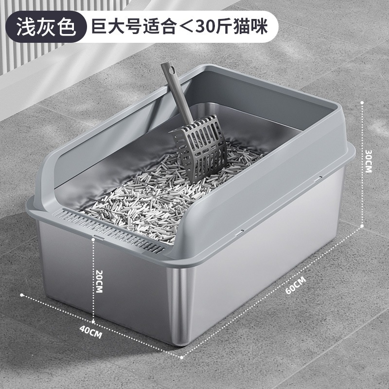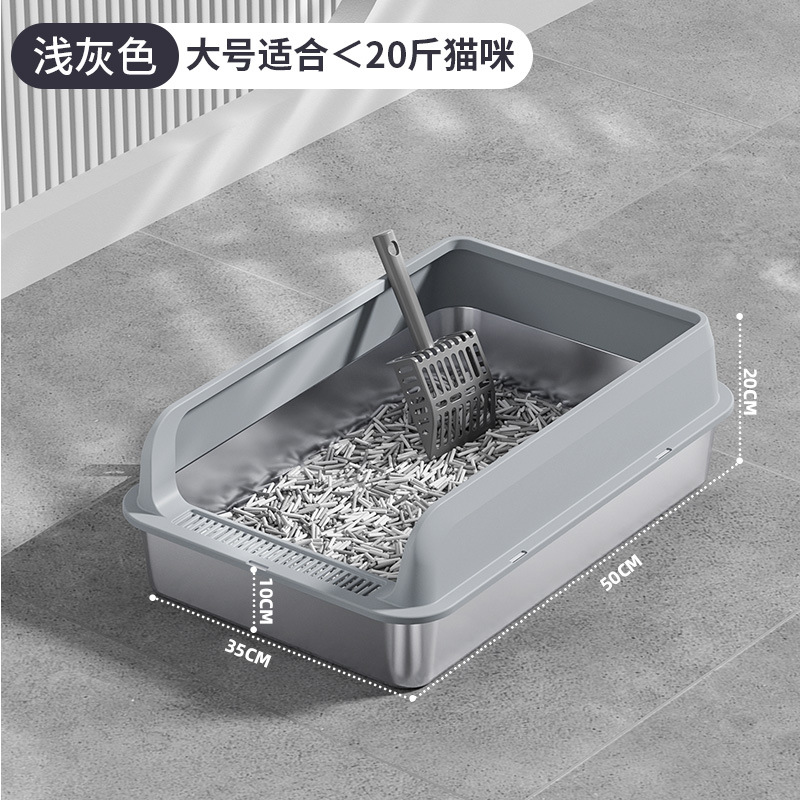 스테인레스 스틸 고양이 쓰레기 분지 교차 국경 대형 높은 울타리 안티 스플래시 심화 톱 엔트리 고양이 화장실 반 폐쇄 모래 분지