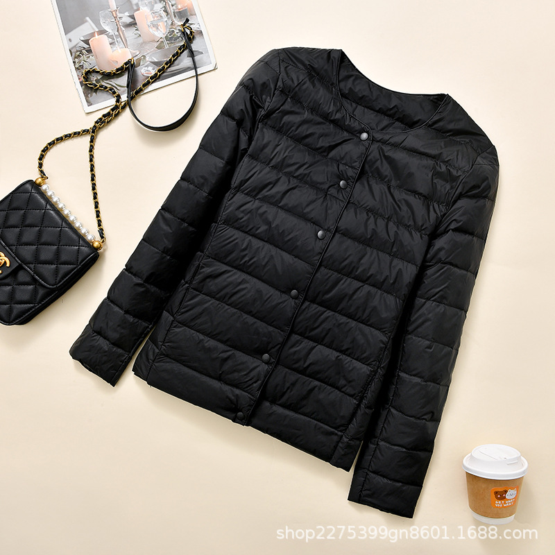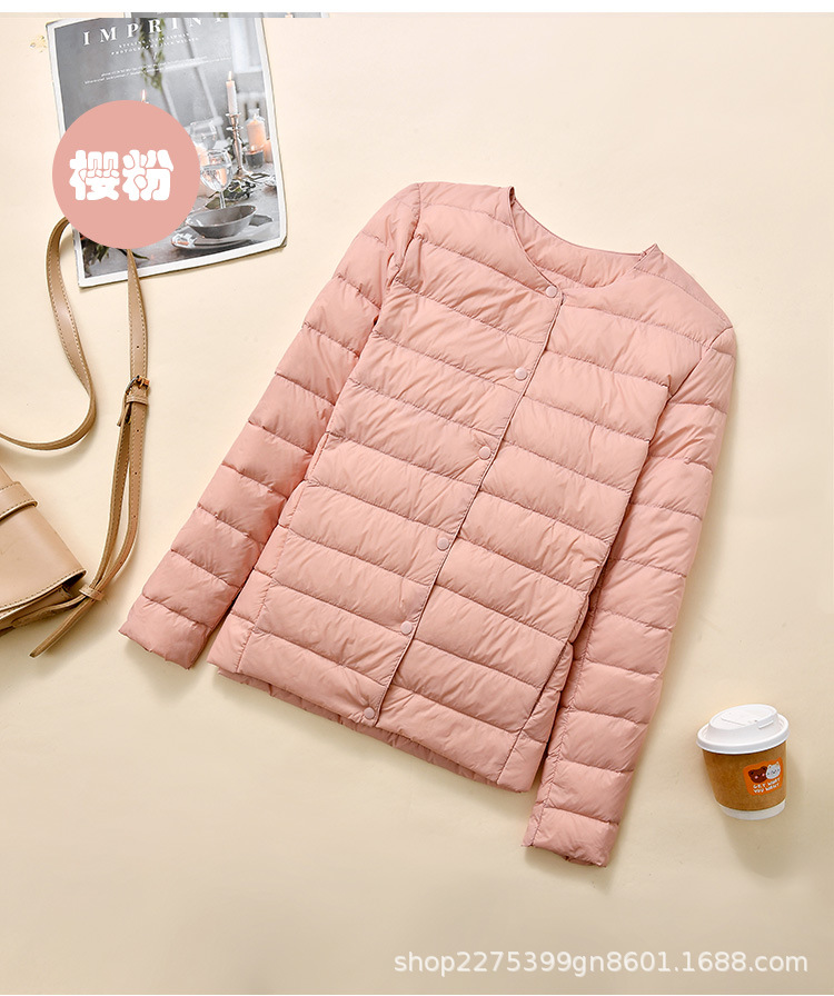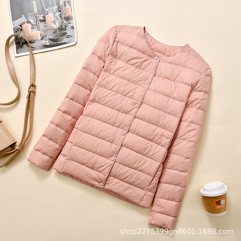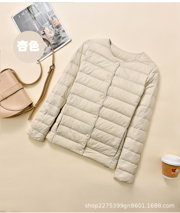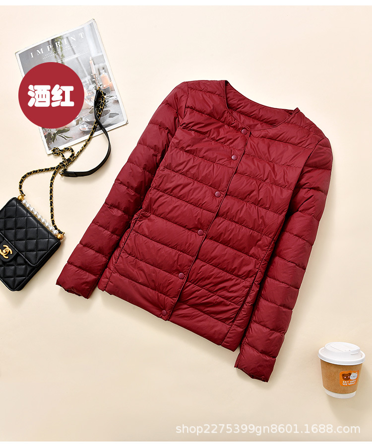 2024 새로운 90 벨벳 라이트 다운 재킷 여성용 둥근 목 따뜻한 라이너 짧은 플러스 사이즈 코트 가을과 겨울 여성용 칼라리스스토어 가기