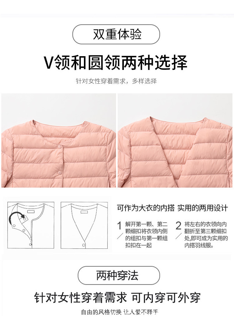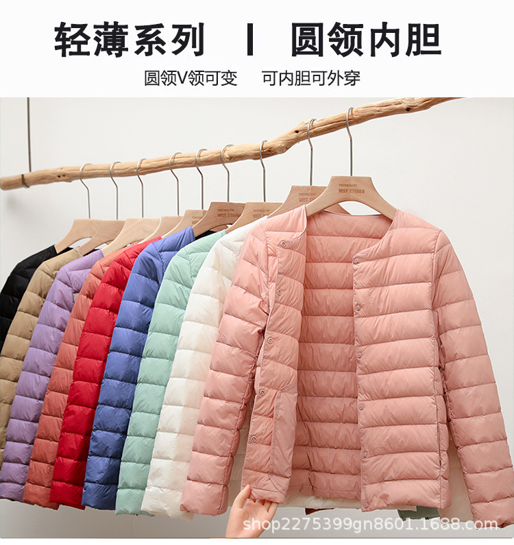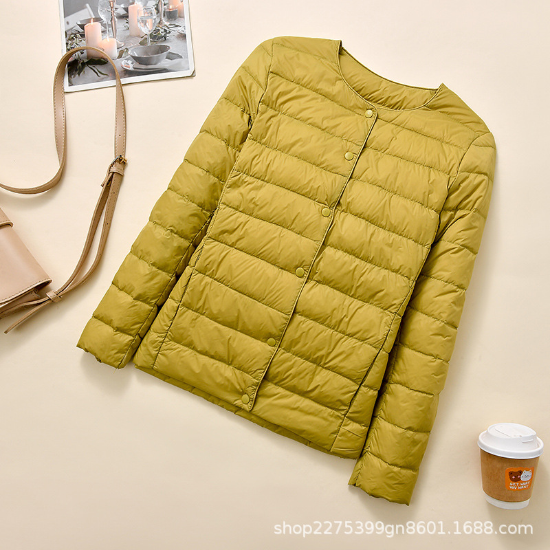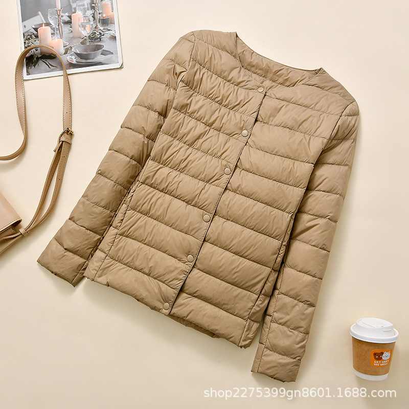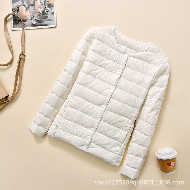 2024 새로운 90 벨벳 라이트 다운 재킷 여성용 둥근 목 따뜻한 라이너 짧은 플러스 사이즈 코트 가을과 겨울 여성용 칼라리스스토어 가기