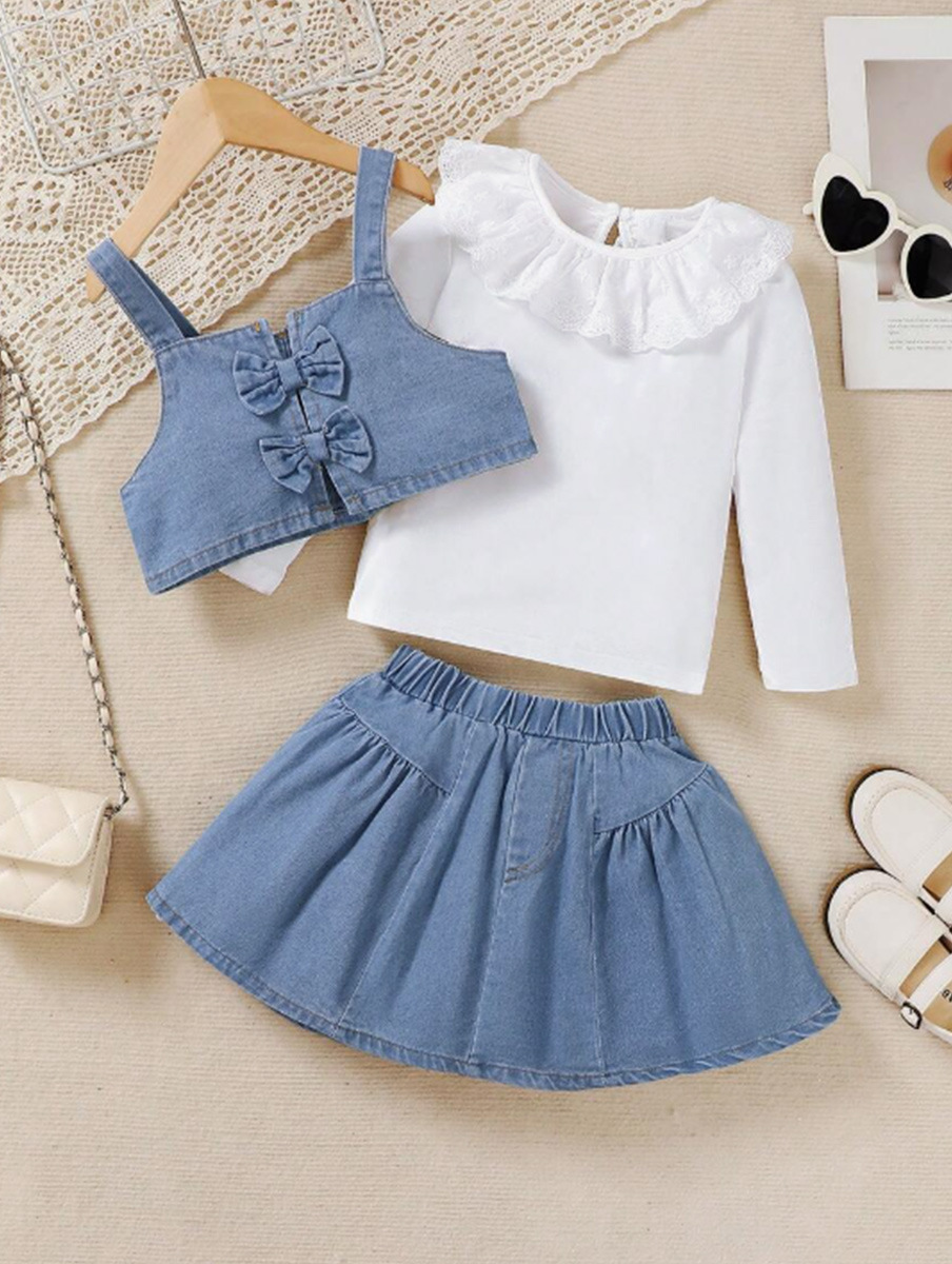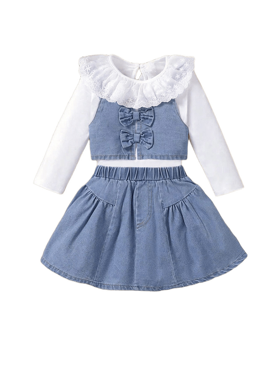대외 무역 아마존 유럽과 미국 봄과 가을 새로운 유행 소녀의 세트 레이스 칼라 긴 소매 조끼 스커트 3 조각 세트스토어 가기