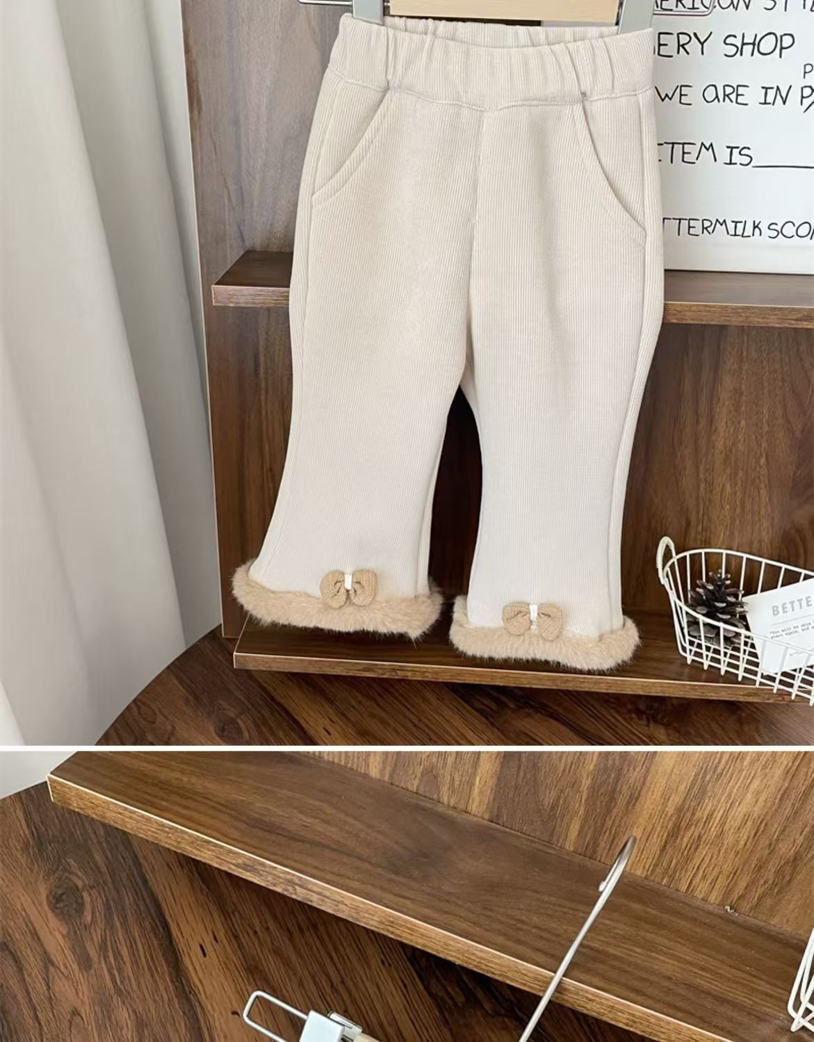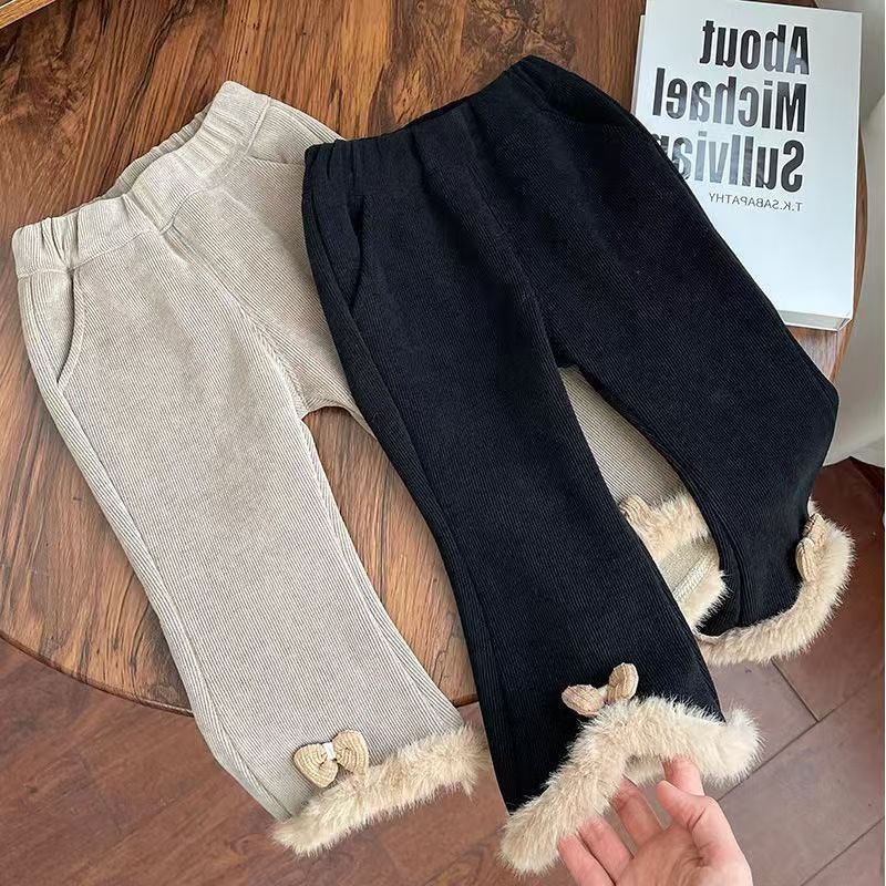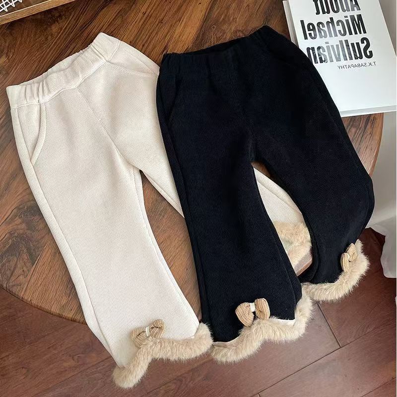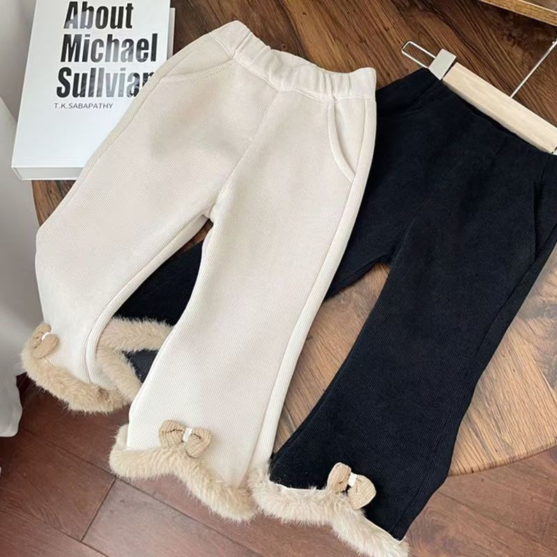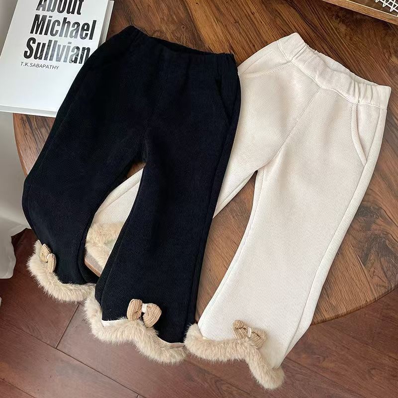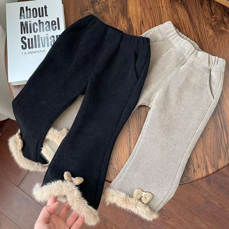 2024 겨울 새로운 아기 소녀 플레어 바지 원피스 벨벳 서양식 레깅스 아기 소녀 기모 두꺼운 바지스토어 가기
