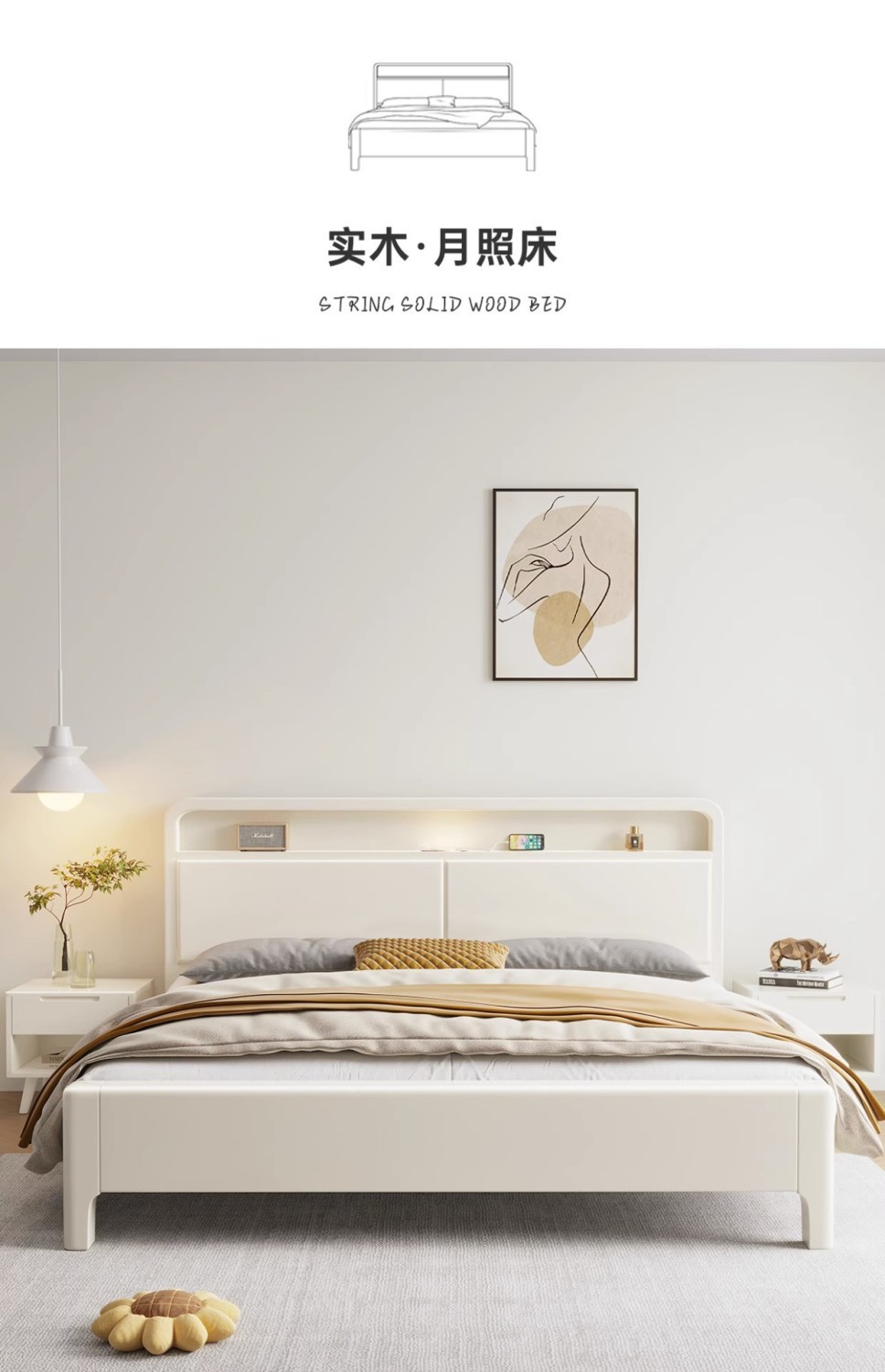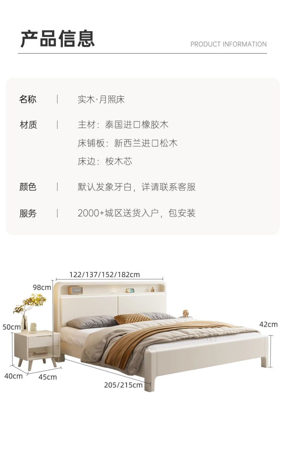 • 침대 + 20cm 코코넛 야자 매트 + 침대 옆 탁자 * 1