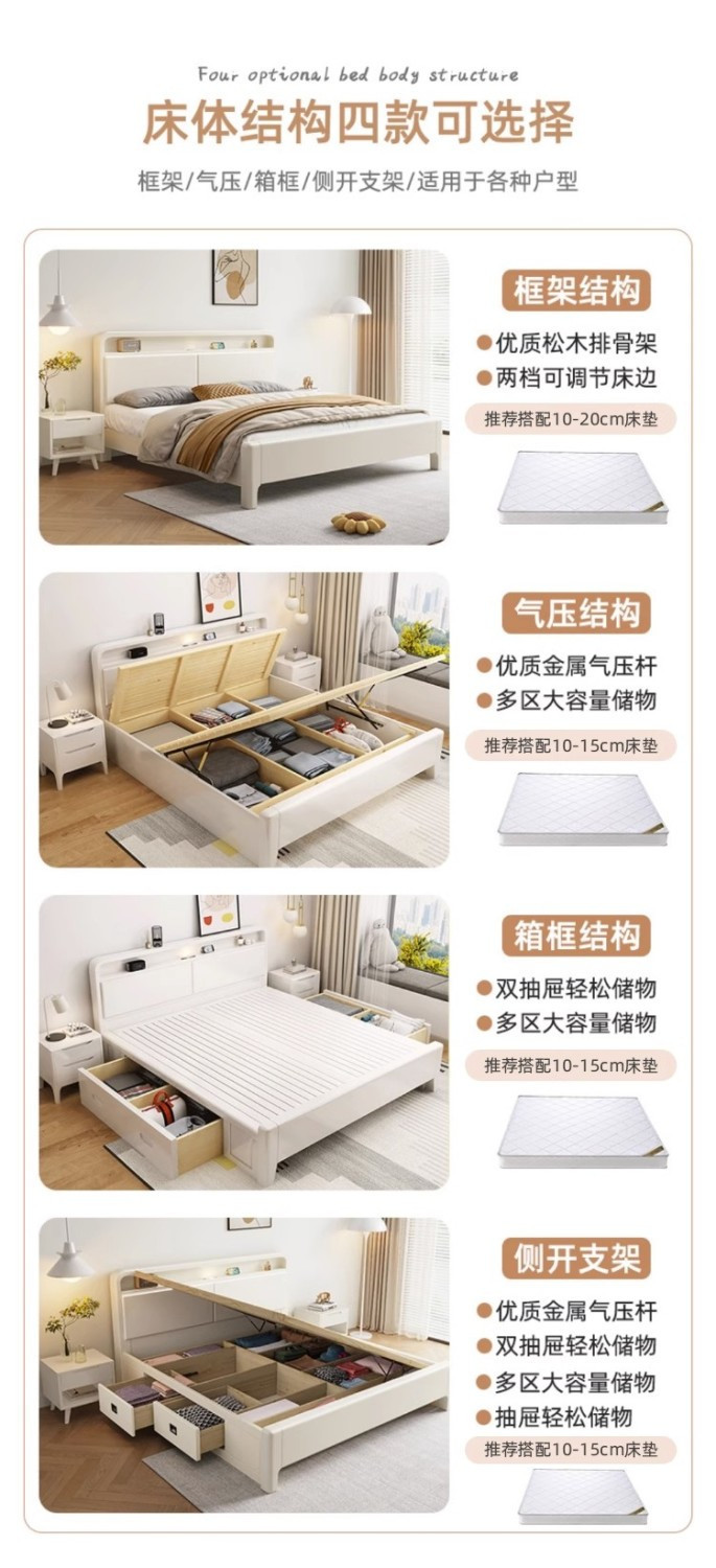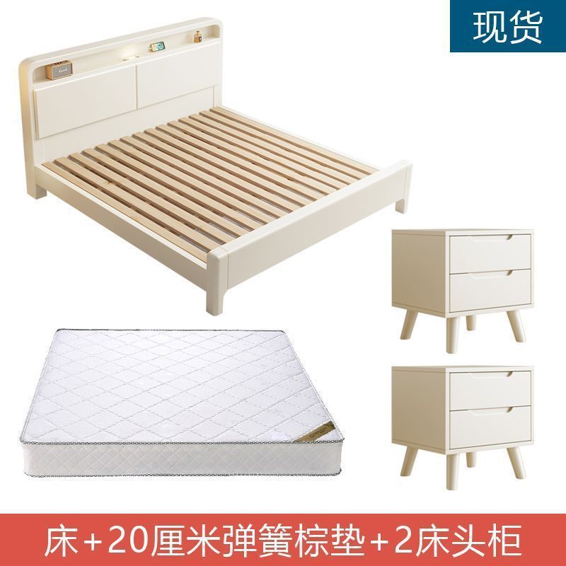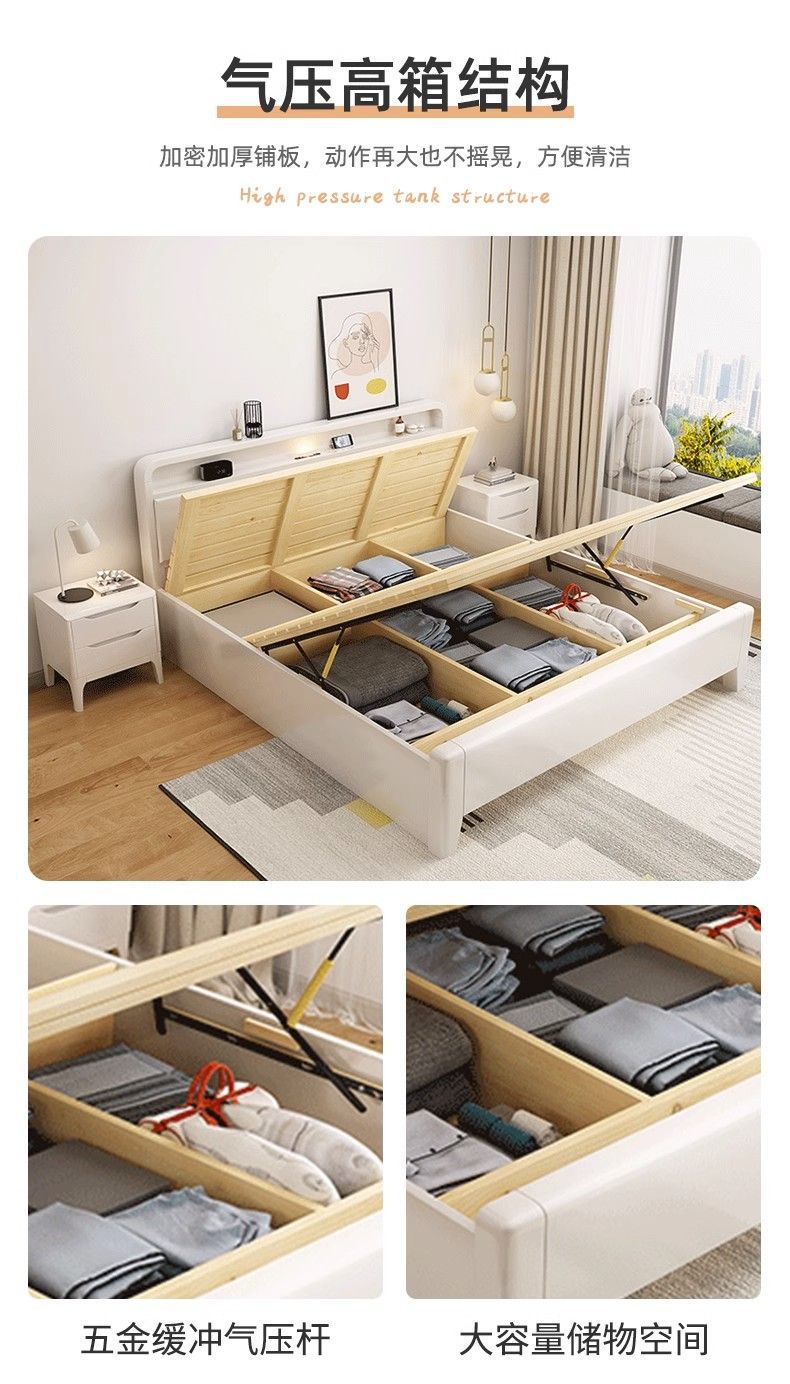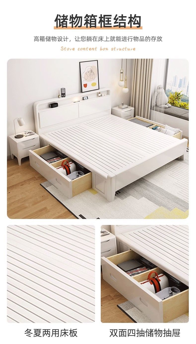 단단한 나무 침대 현대 간단한 저장 침대 화이트 클리어런스 스타일 싱글 더블 침대 1.2m 침실 마스터 침실 홈스테이 작은 아파트스토어 가기
