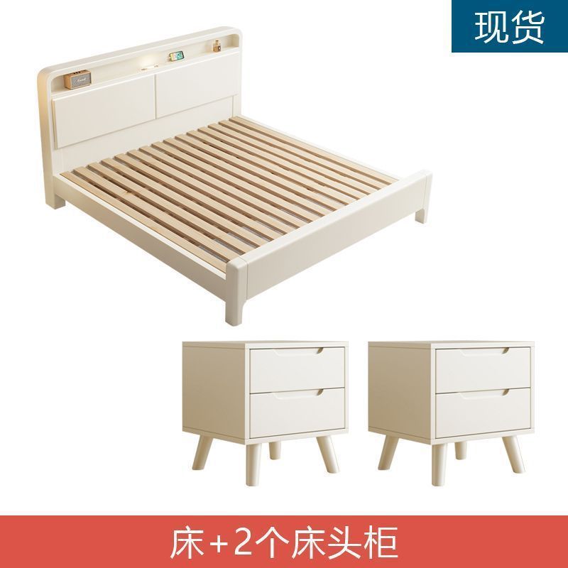 단단한 나무 침대 현대 간단한 저장 침대 화이트 클리어런스 스타일 싱글 더블 침대 1.2m 침실 마스터 침실 홈스테이 작은 아파트