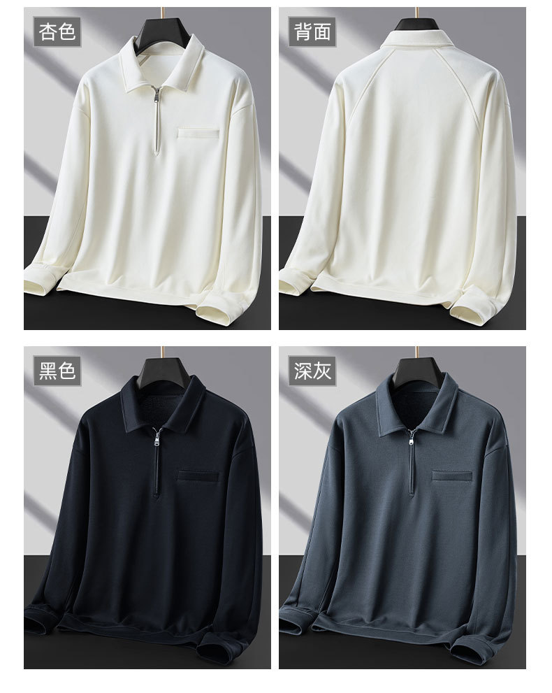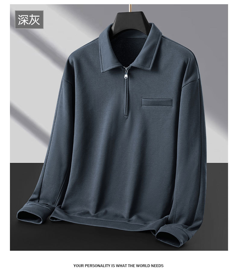 가을 입장 고급 남성 POLO 하프 카디건 지퍼 옷깃 긴 소매 티셔츠 느슨한 캐주얼 패션 비즈니스 스웨터 남성용스토어 가기