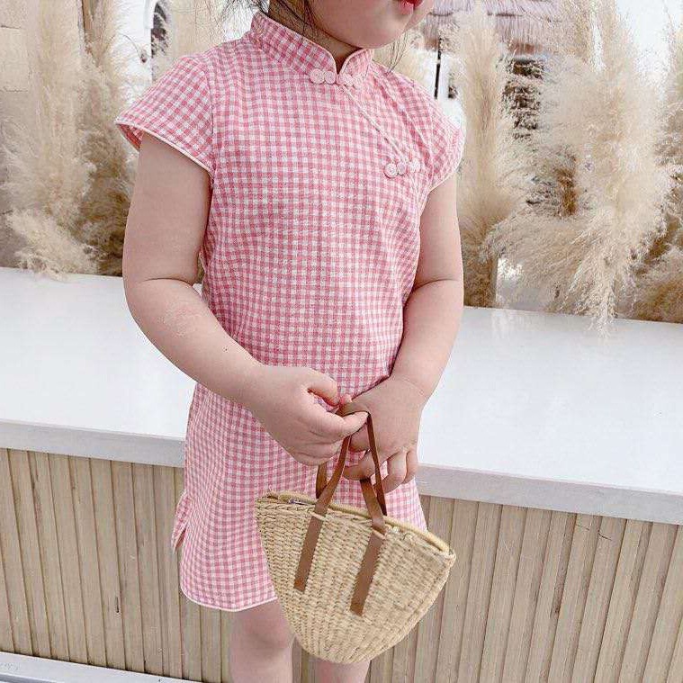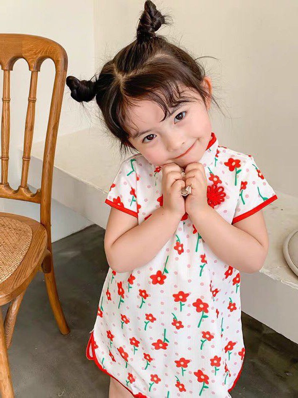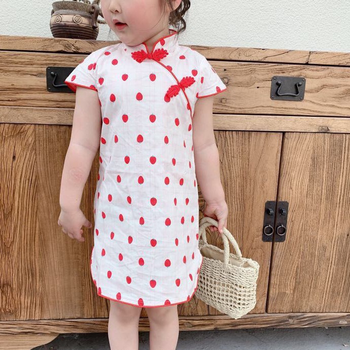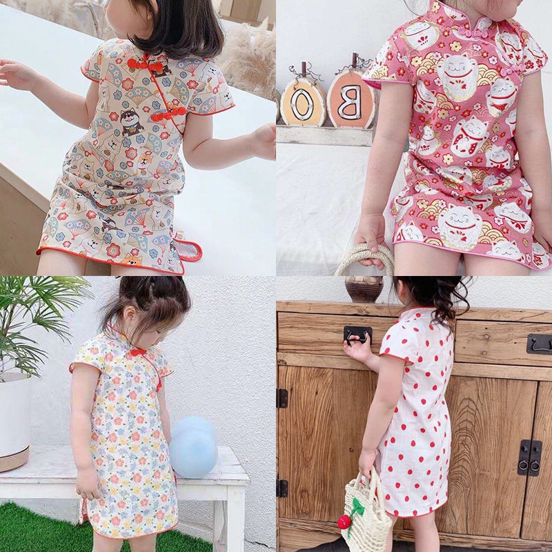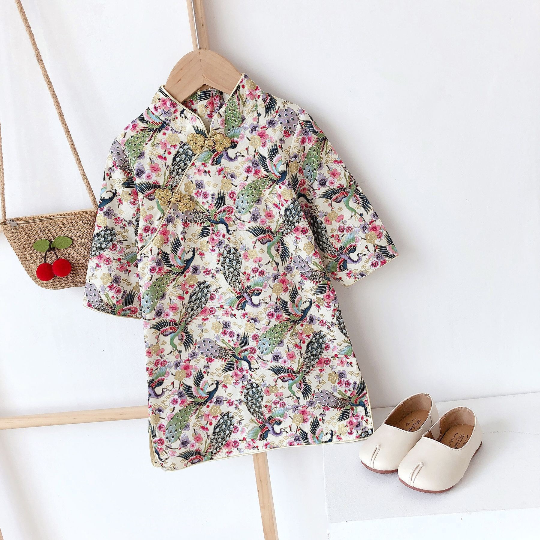 2024 년 여름 새로운 어린이 소녀 인쇄 cheongsam 여성 탕 민족 스타일 면화 세대 원피스