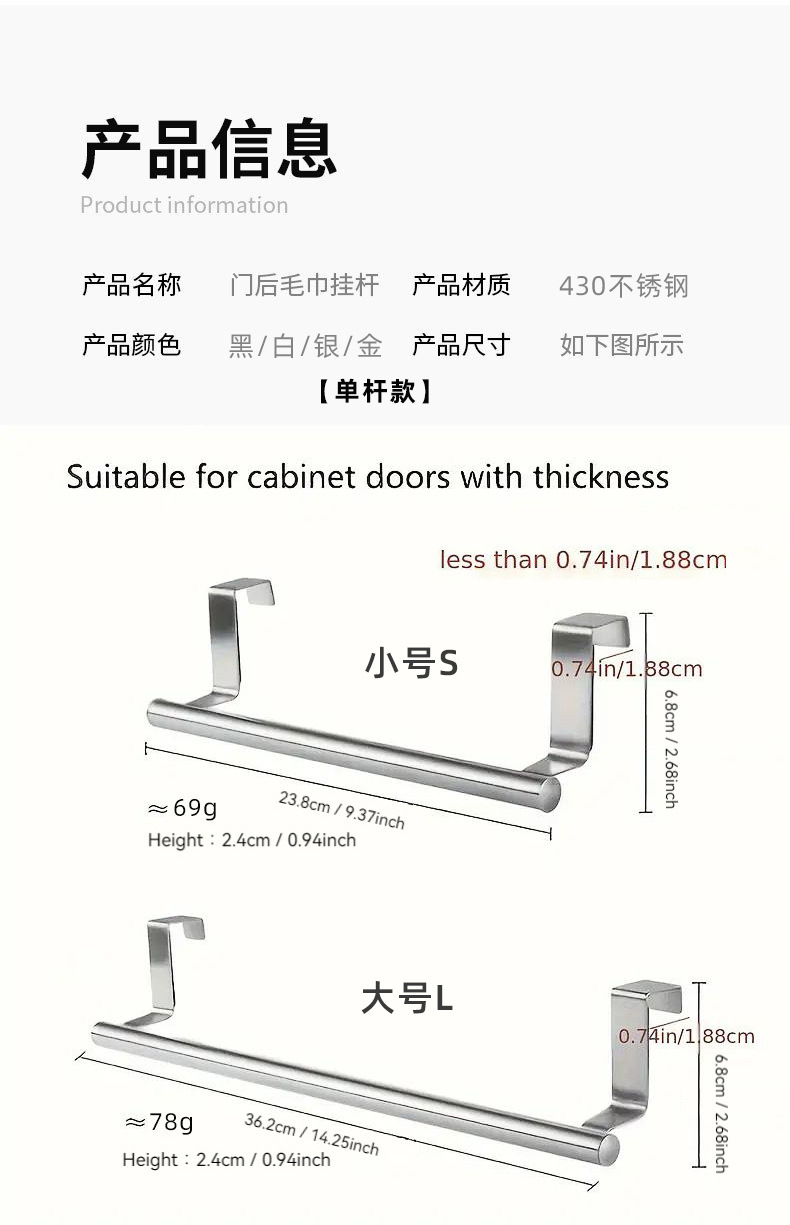 Stainless Steel Towel Rack Stainless Steel Dish Towel Rack Bar | Over Cabinet Door Towel Bar Hanging Holder - Kitchen, Bathroom - No Scratch - No Installation