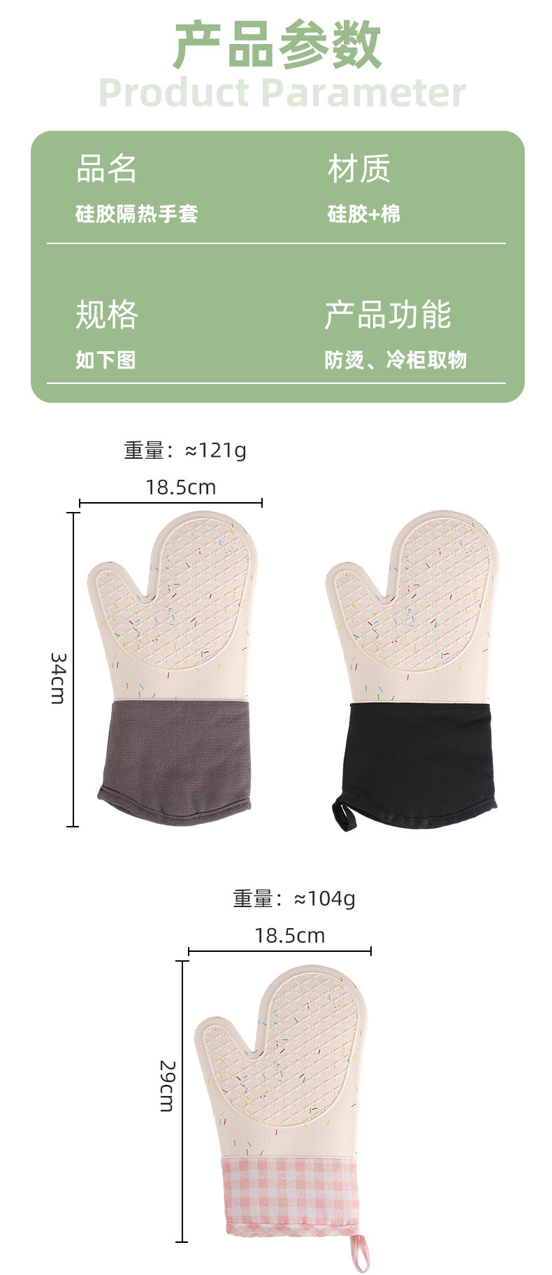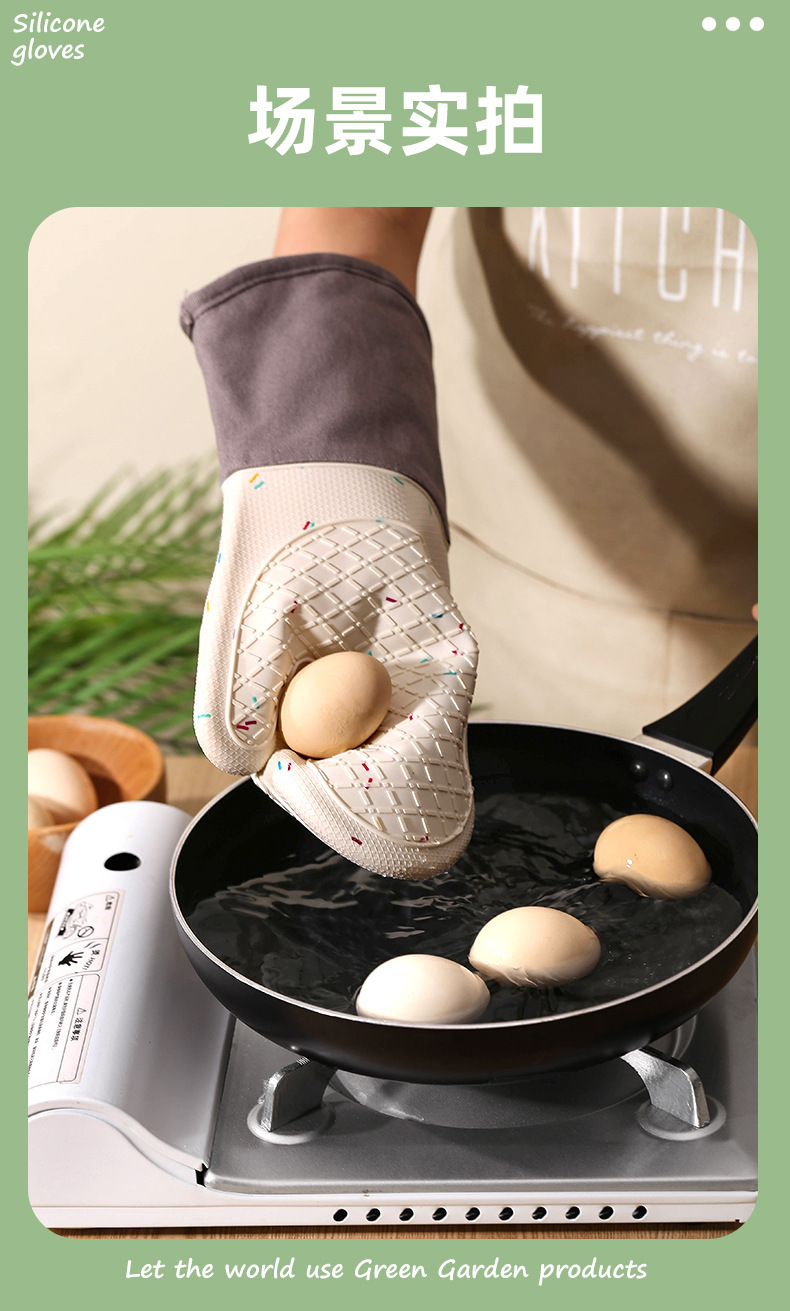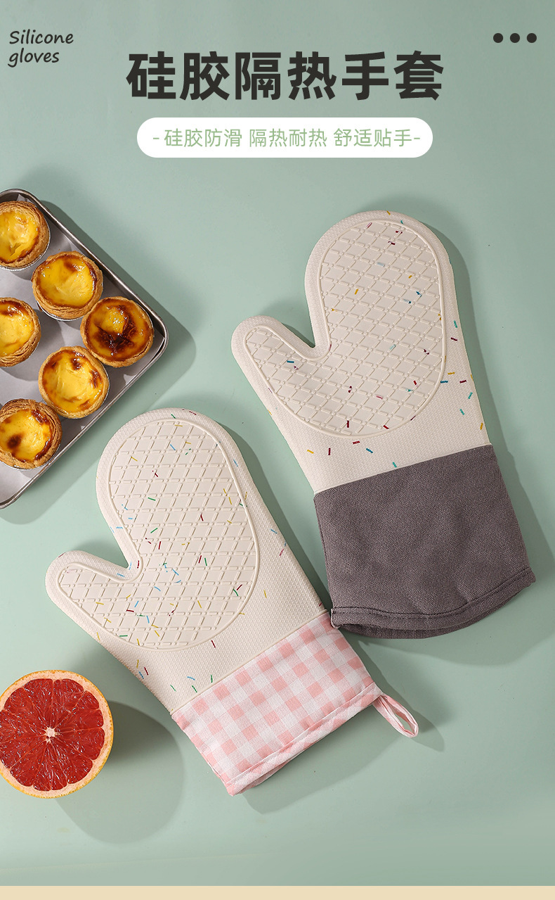 비 슬립 내열성 마이크로파 장갑 주방 안티 스케일링 두꺼운 실리콘 단열 장갑 Prellis 면 실리콘 장갑