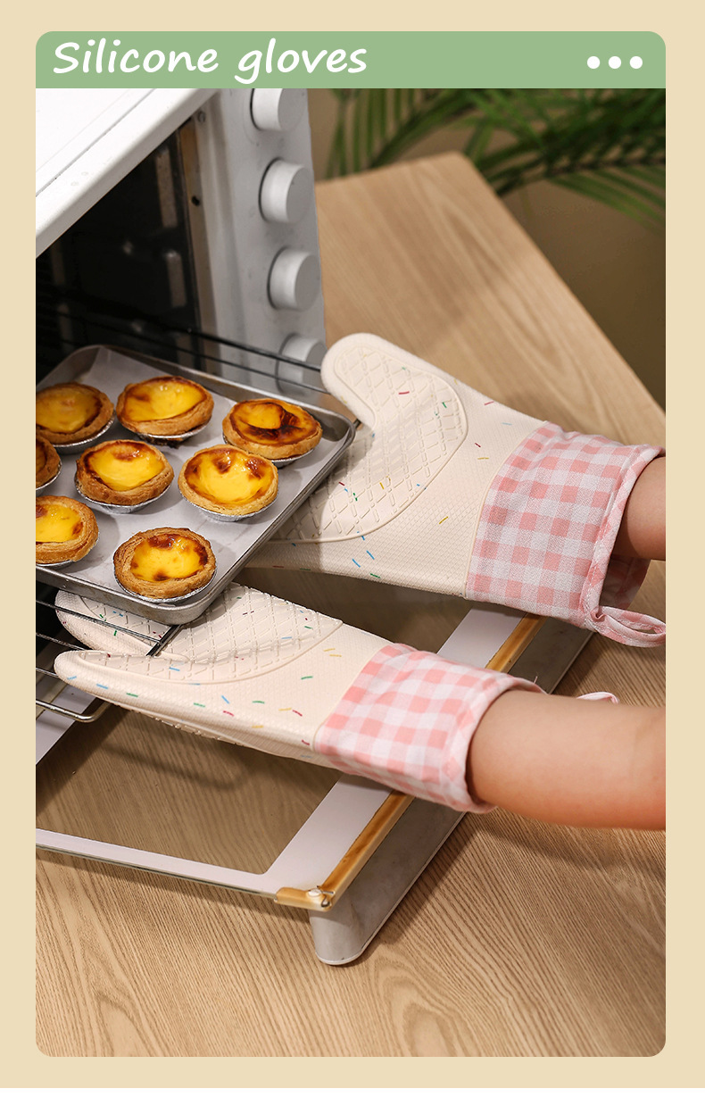 비 슬립 내열성 마이크로파 장갑 주방 안티 스케일링 두꺼운 실리콘 단열 장갑 Prellis 면 실리콘 장갑스토어 가기