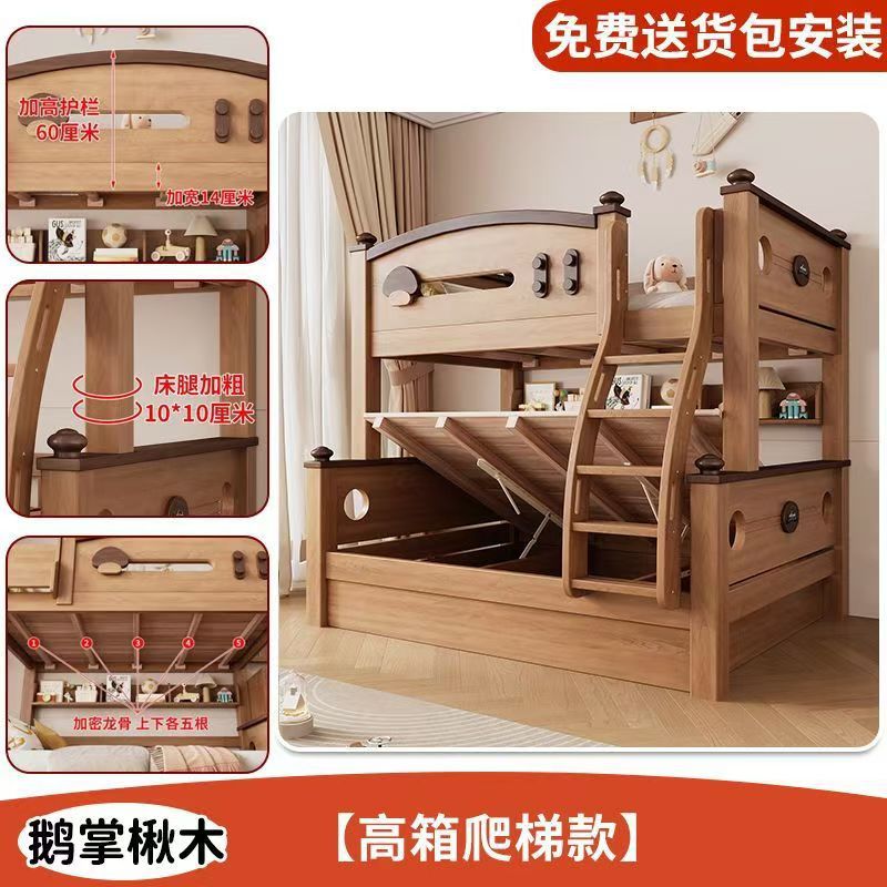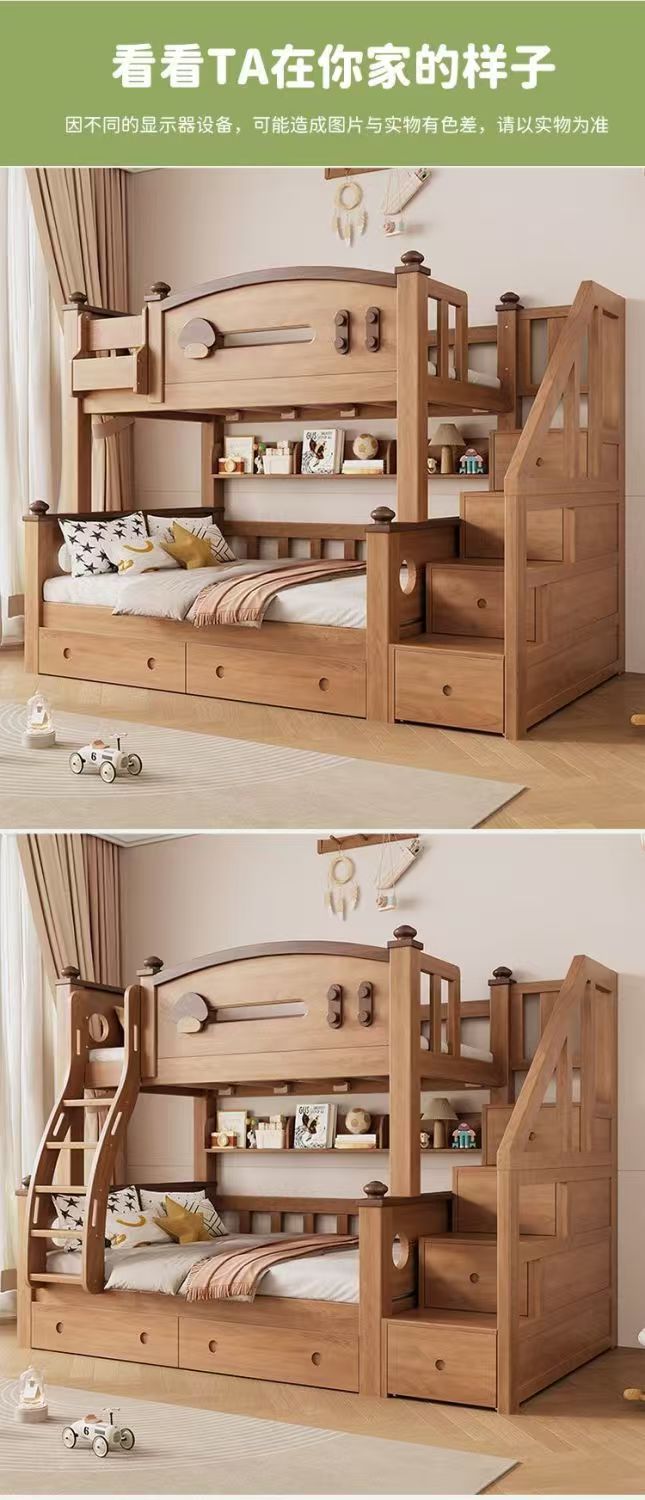 Liriodendron 버섯 어린이 침대 이층 침대 고급 침대 다기능 높고 낮은 어머니 2 층 침대 나무 침대스토어 가기