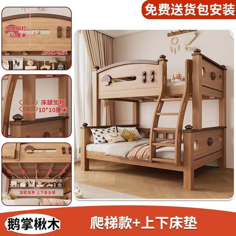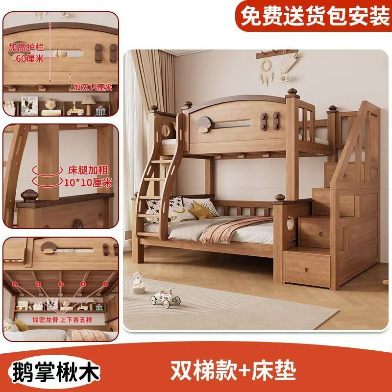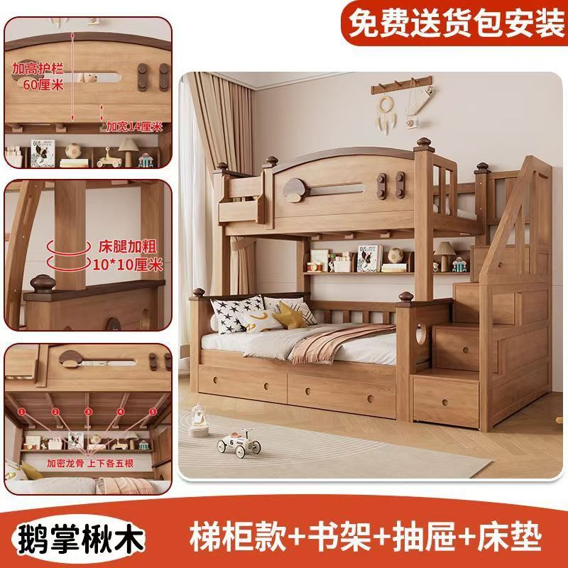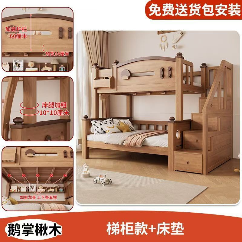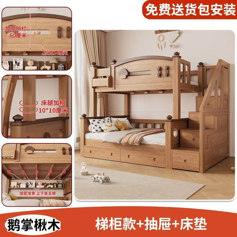 Liriodendron 버섯 어린이 침대 이층 침대 고급 침대 다기능 높고 낮은 어머니 2 층 침대 나무 침대