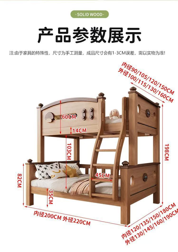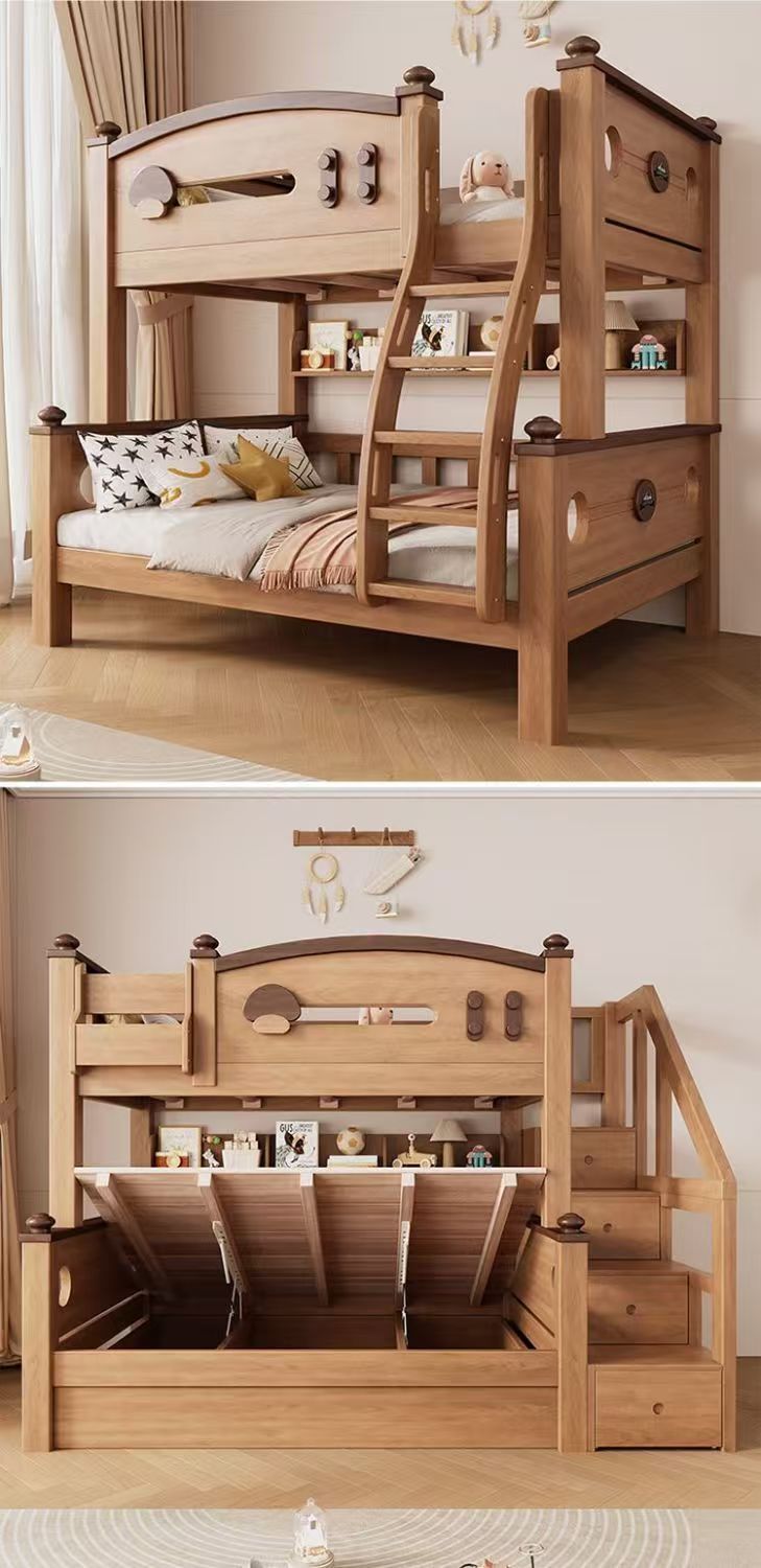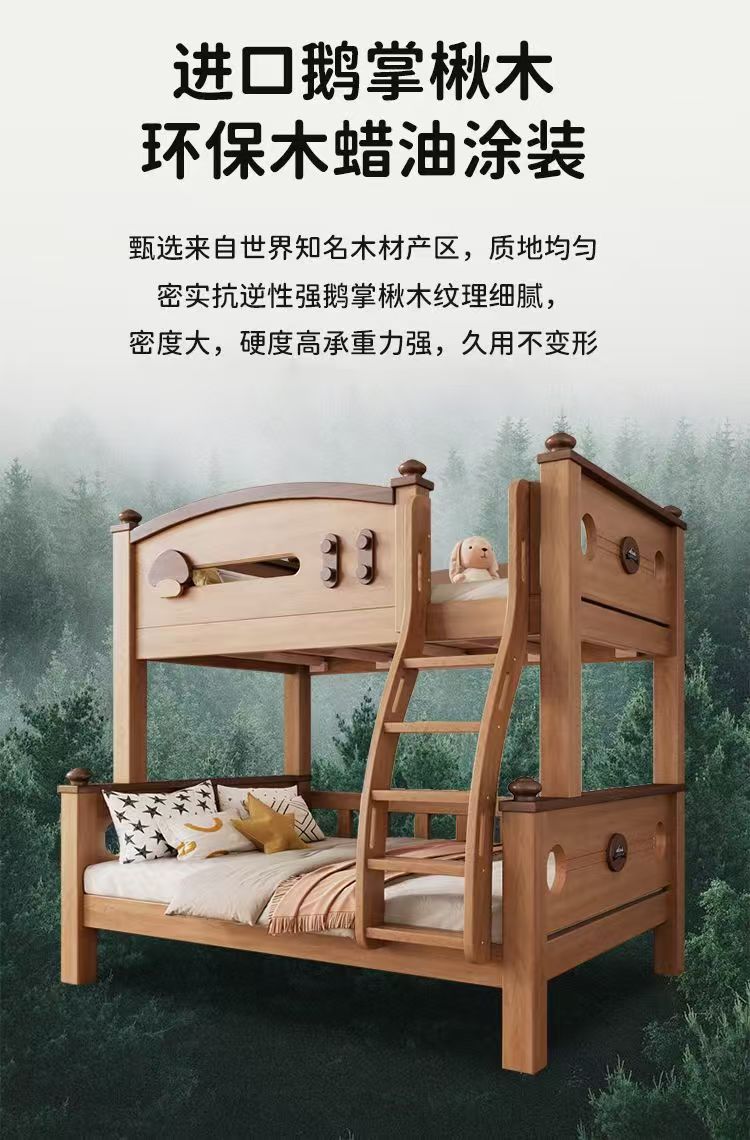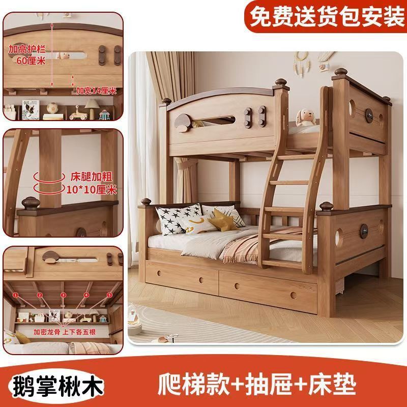 Liriodendron 버섯 어린이 침대 이층 침대 고급 침대 다기능 높고 낮은 어머니 2 층 침대 나무 침대